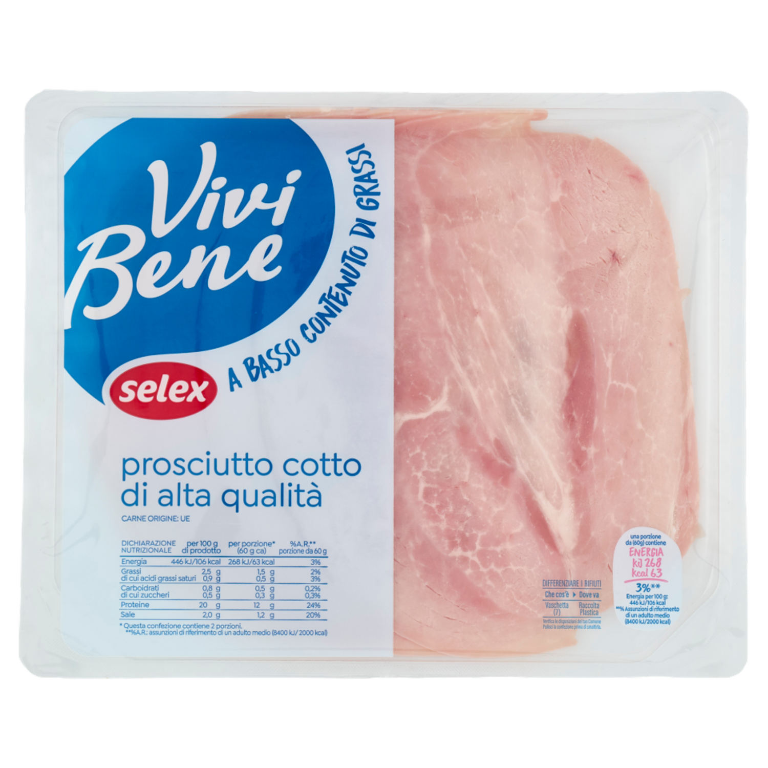 Selex Vivi Bene Prosciutto Cotto di Alta Qualità a Basso Contenuto di Grassi a Fette 120 g