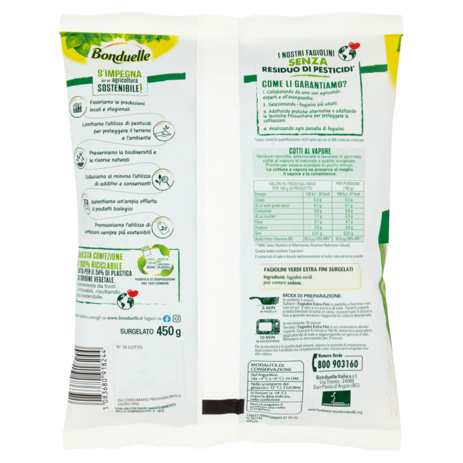 Bonduelle Fagiolini Extra Fini Surgelato 450 g