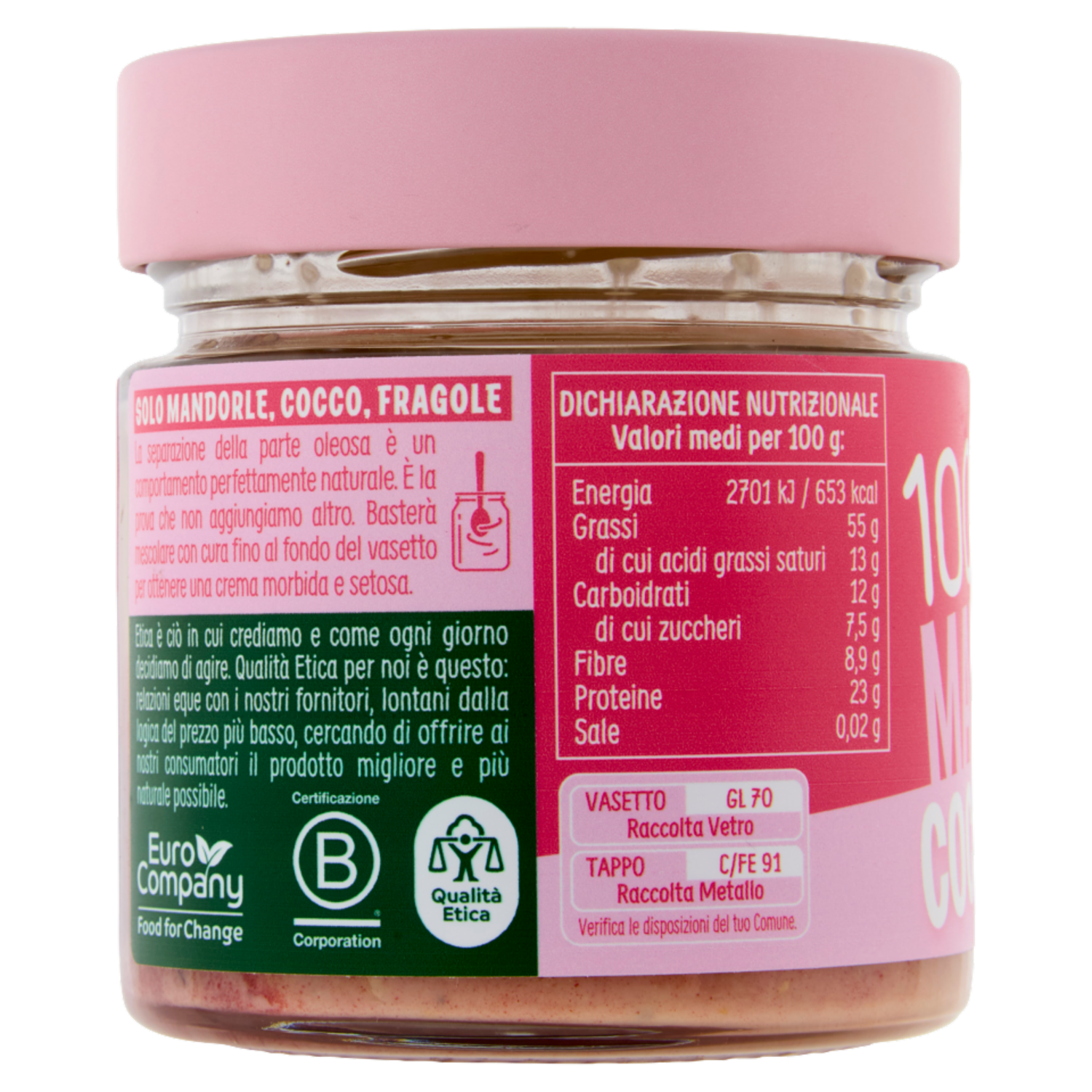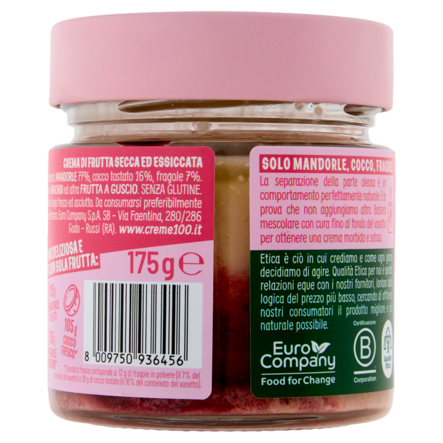 Euro Company Pink edition 100% Crema Pura di Mandorle, cocco & fragole 175 g