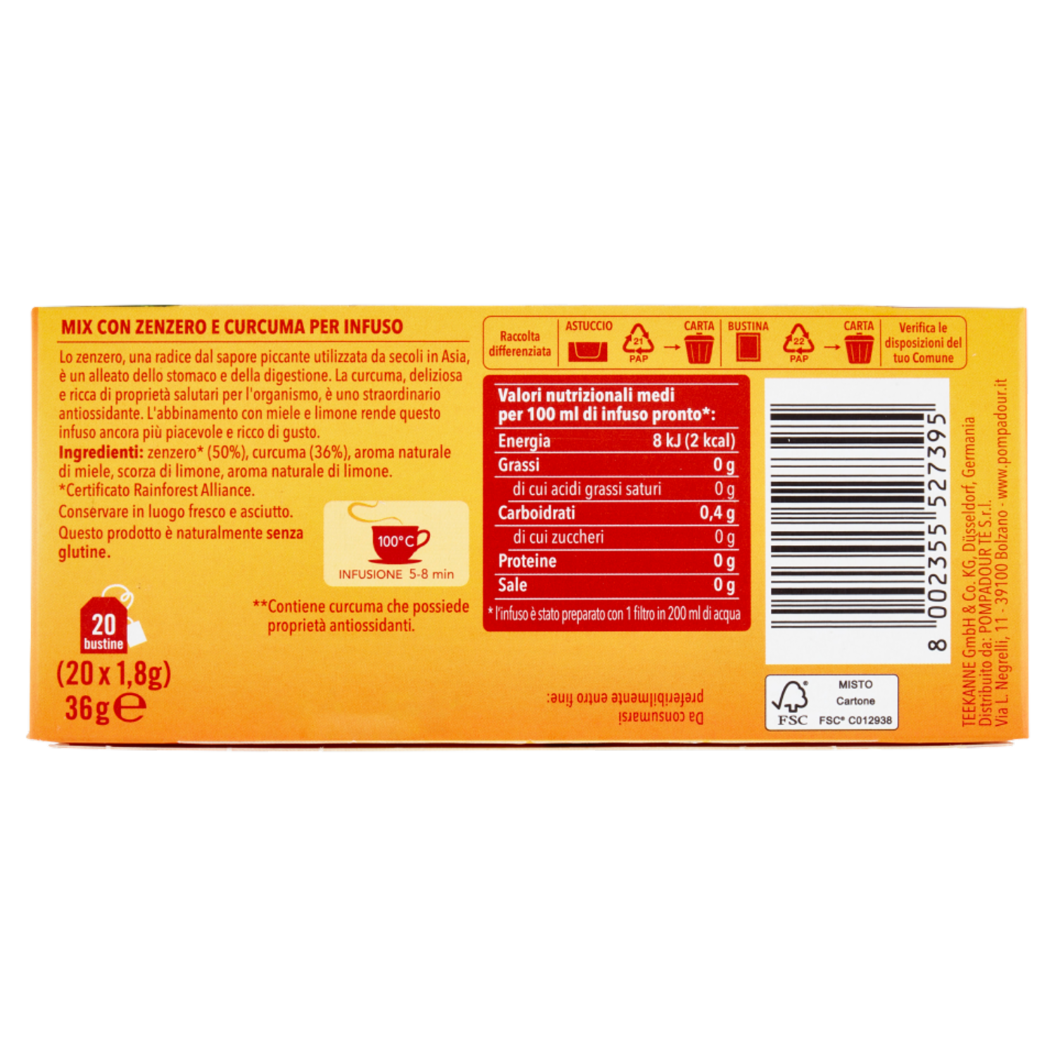 Pompadour Infuso Zenzero Curcuma bustine 20 x 1,8 g