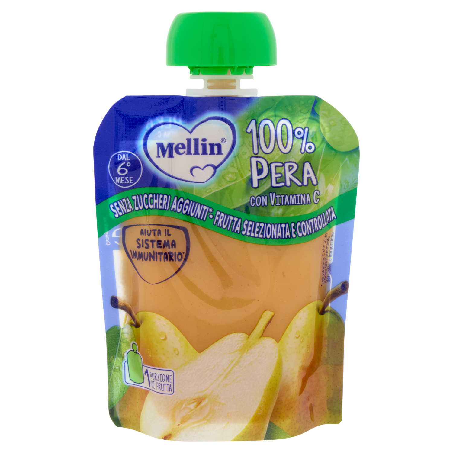 MELLIN Merenda di Frutta 100% con Vitamina C, Pera, a partire dal 6° mese, Pouch 90 g