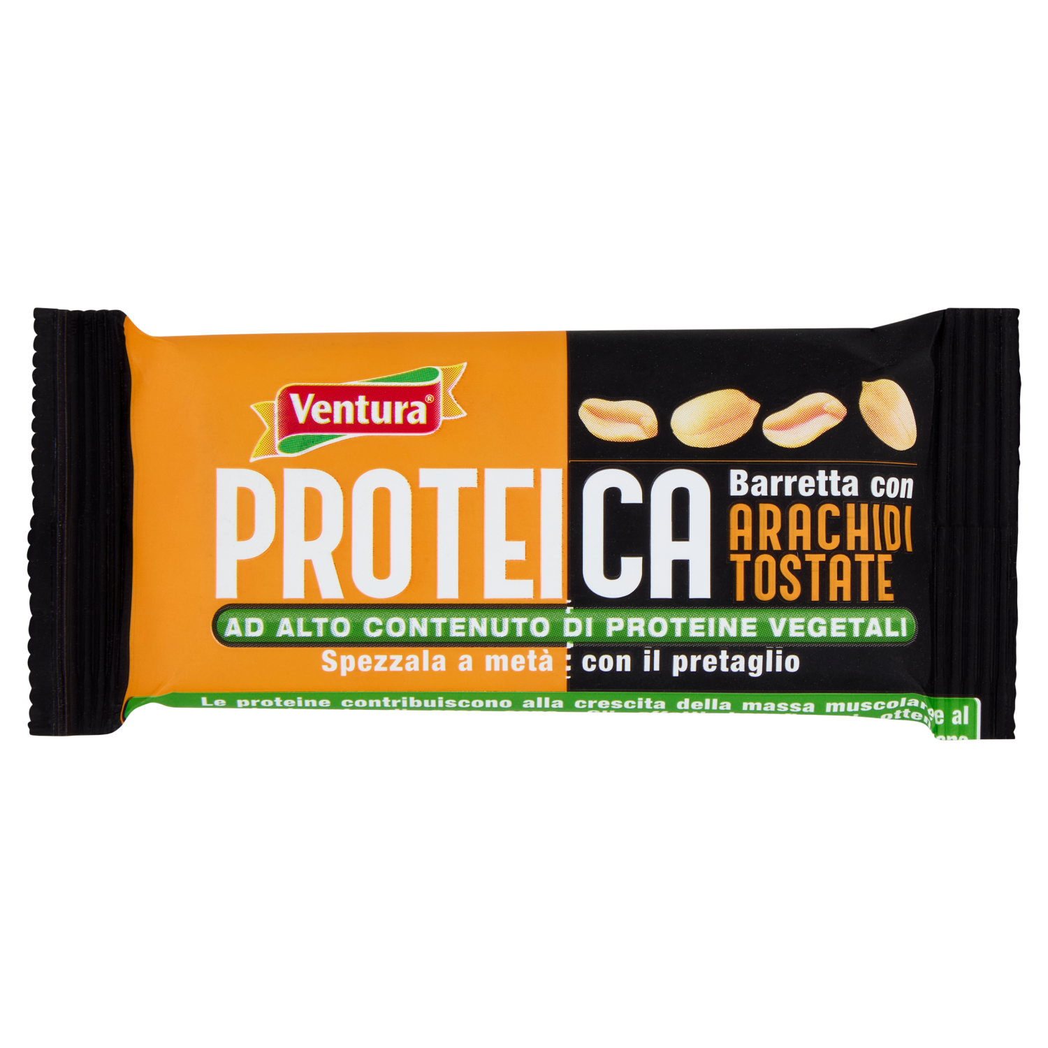 Le proteine contribuiscono alla crescita della massa muscolare e al mantenimento di ossa sane. Gli effetti benefici si ottengono consumando una barretta. Senza glutine Senza latte Senza zuccheri aggiunti.* *contiene naturalmente zuccheri Ventura ha creato la linea di barrette Proteica 100% Vegetale, senza l'utilizzo di ingredienti di origine animale: Per questa ragione è senza lattosio e trae la sua ricchezza dalle proteine dei semi di zucca, estratte e macinate con cura per offrirti un prodotto gustoso. Fai Il Pieno Di Proteine Vegetali! Ventura ti consiglia di seguire una dieta varia e bilanciata e di condurre un sano stile di vita.
