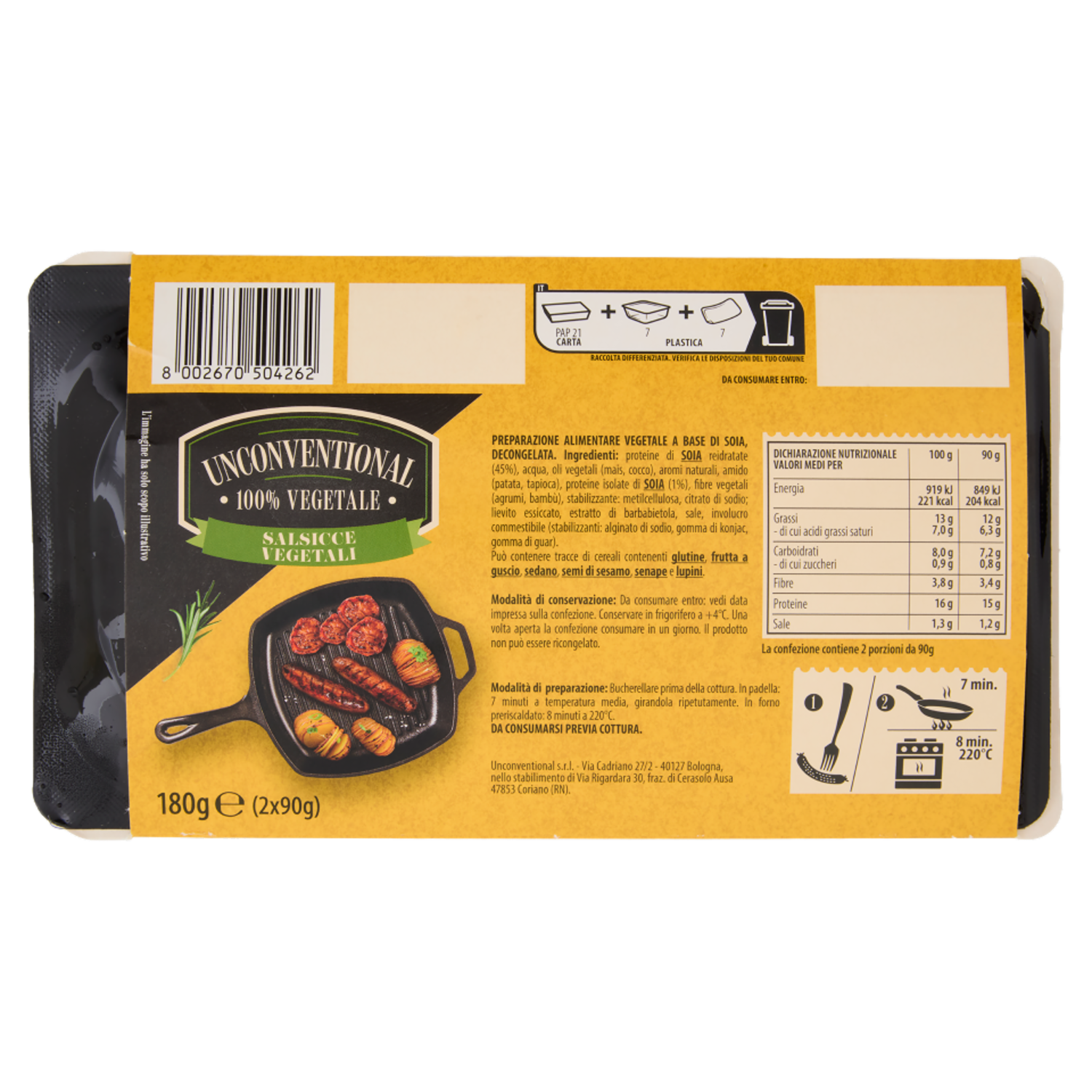 Unconventional Salsicce Vegetali 2 x 90 g