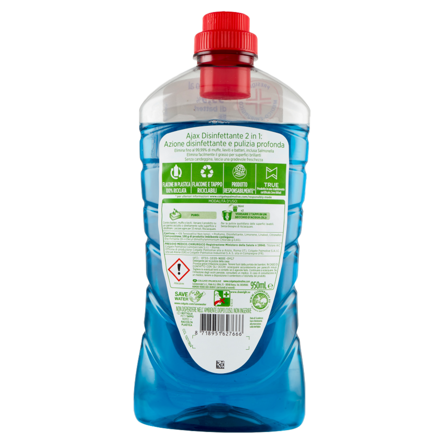 Ajax detersivo pavimenti Disinfettante multisuperficie senza candeggina 950 ml