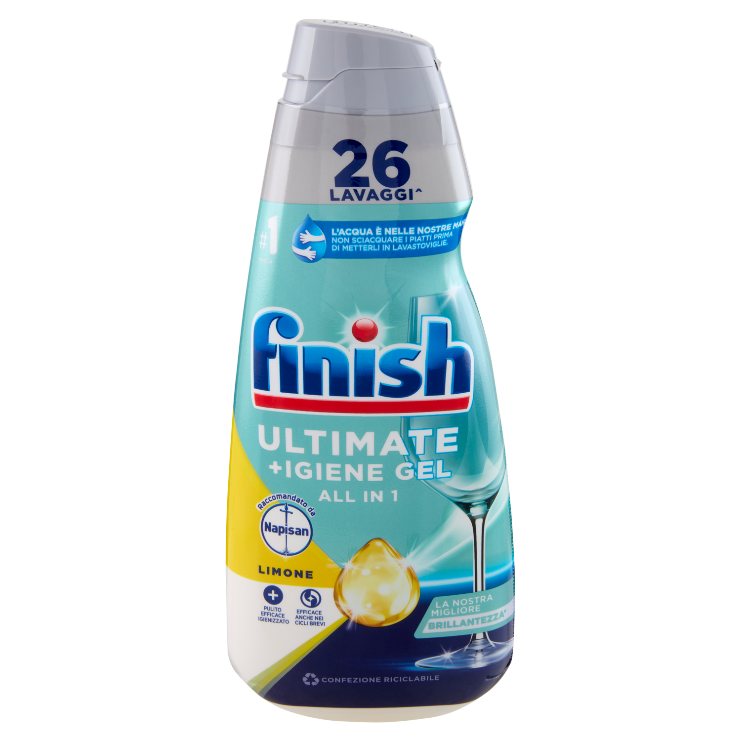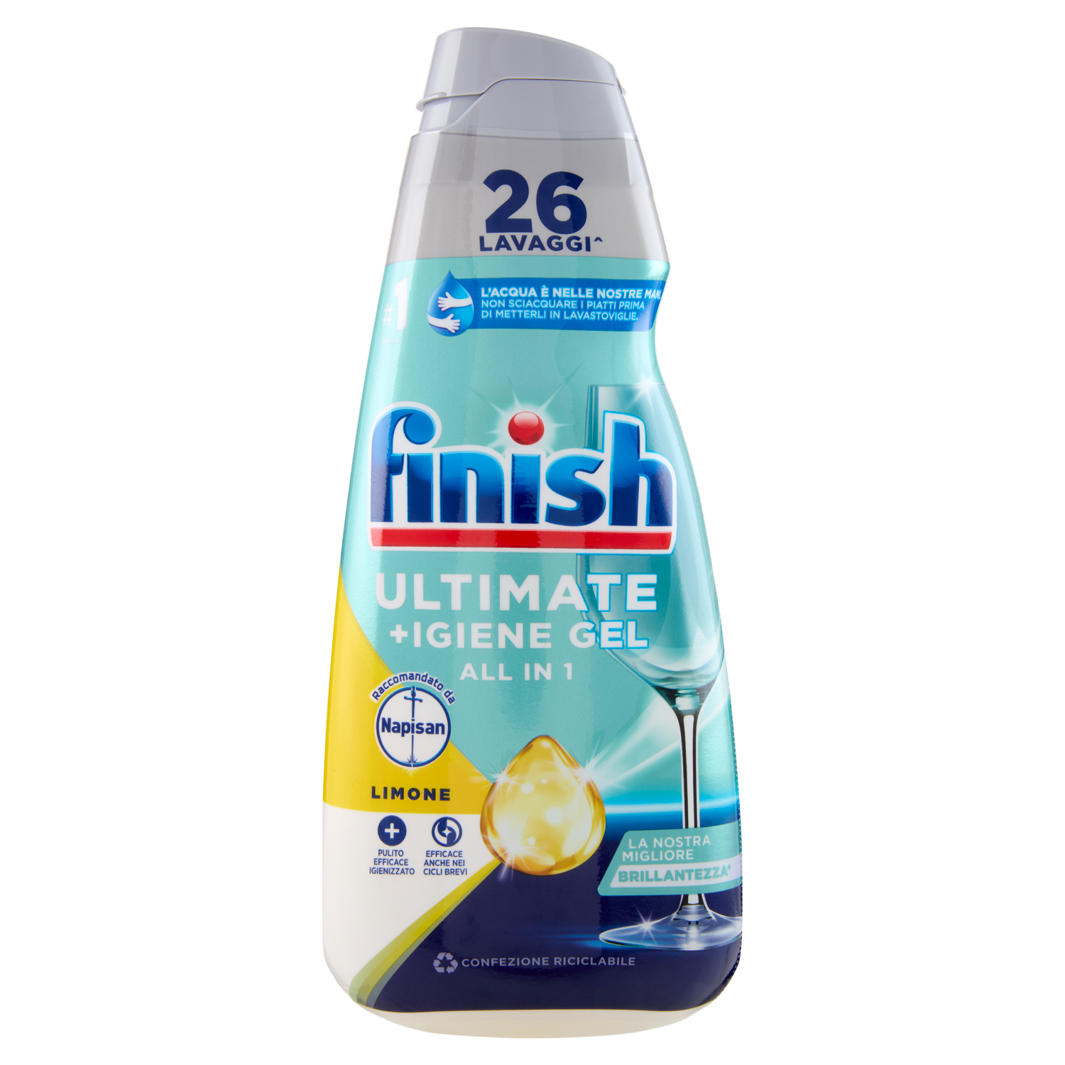 Finish Ultimate + Igiene Gel Limone liquido lavastoviglie 26 lavaggi 560 ml
