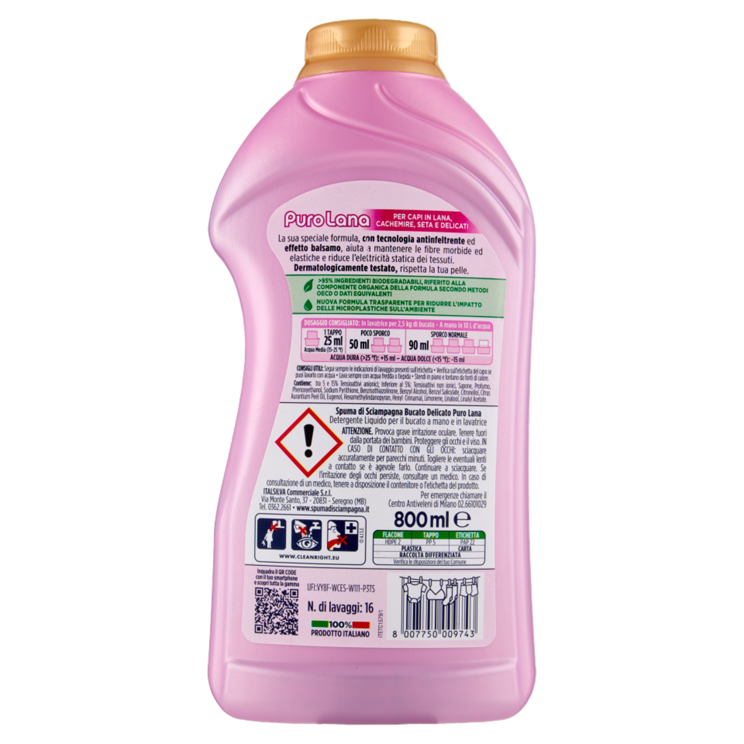 Spuma di Sciampagna Bucato Delicato Pura Lana 800 ml