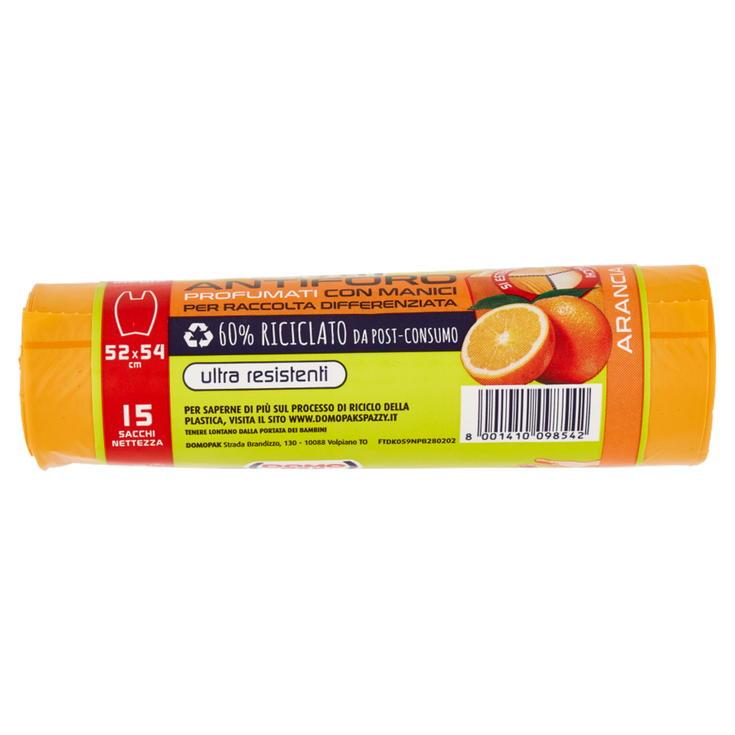 Domopak Spazzy Antiforo Profumati con Manici 28 lt Pattumiera Media 52x54 cm Arancia 15 pz
