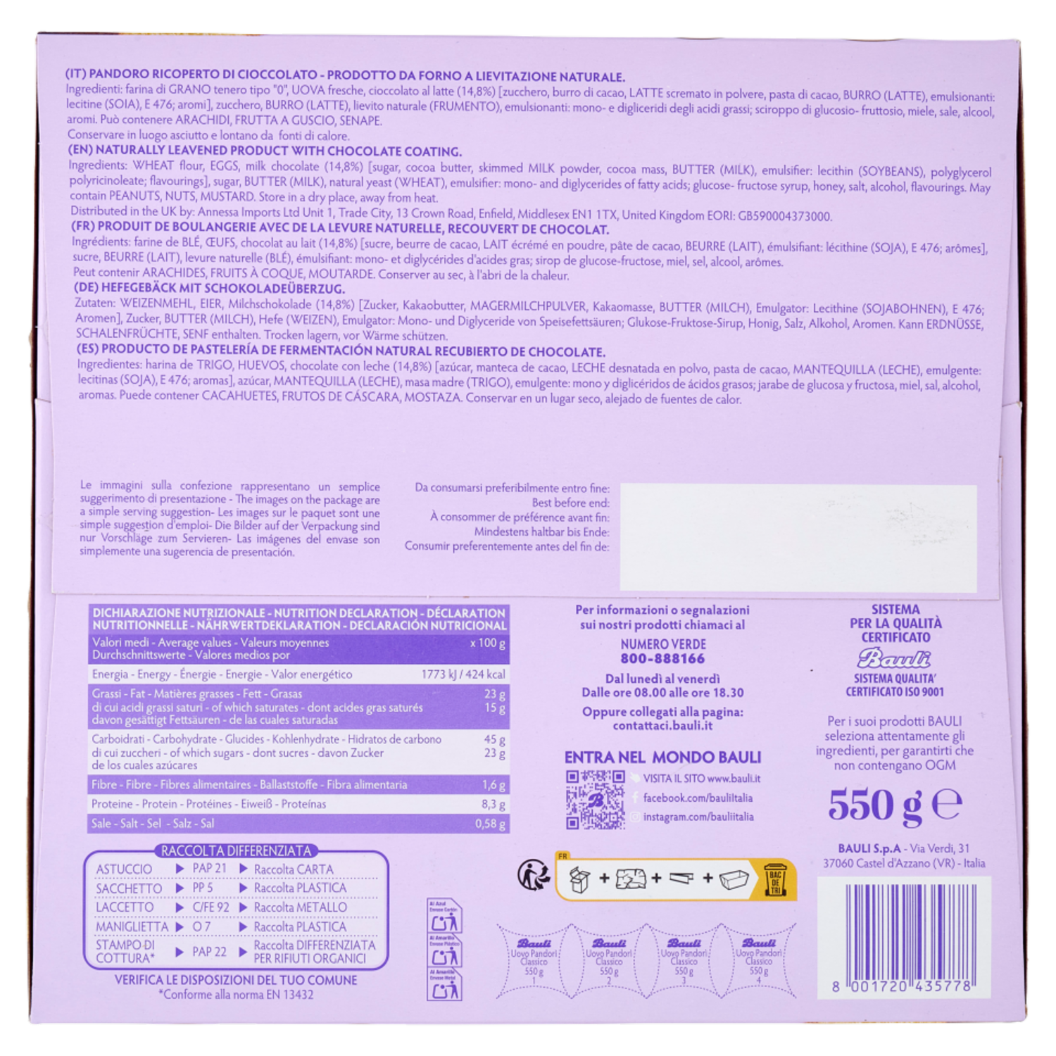 Bauli Pandorì l'Uovo Ricoperto di Cioccolato al Latte 550 g