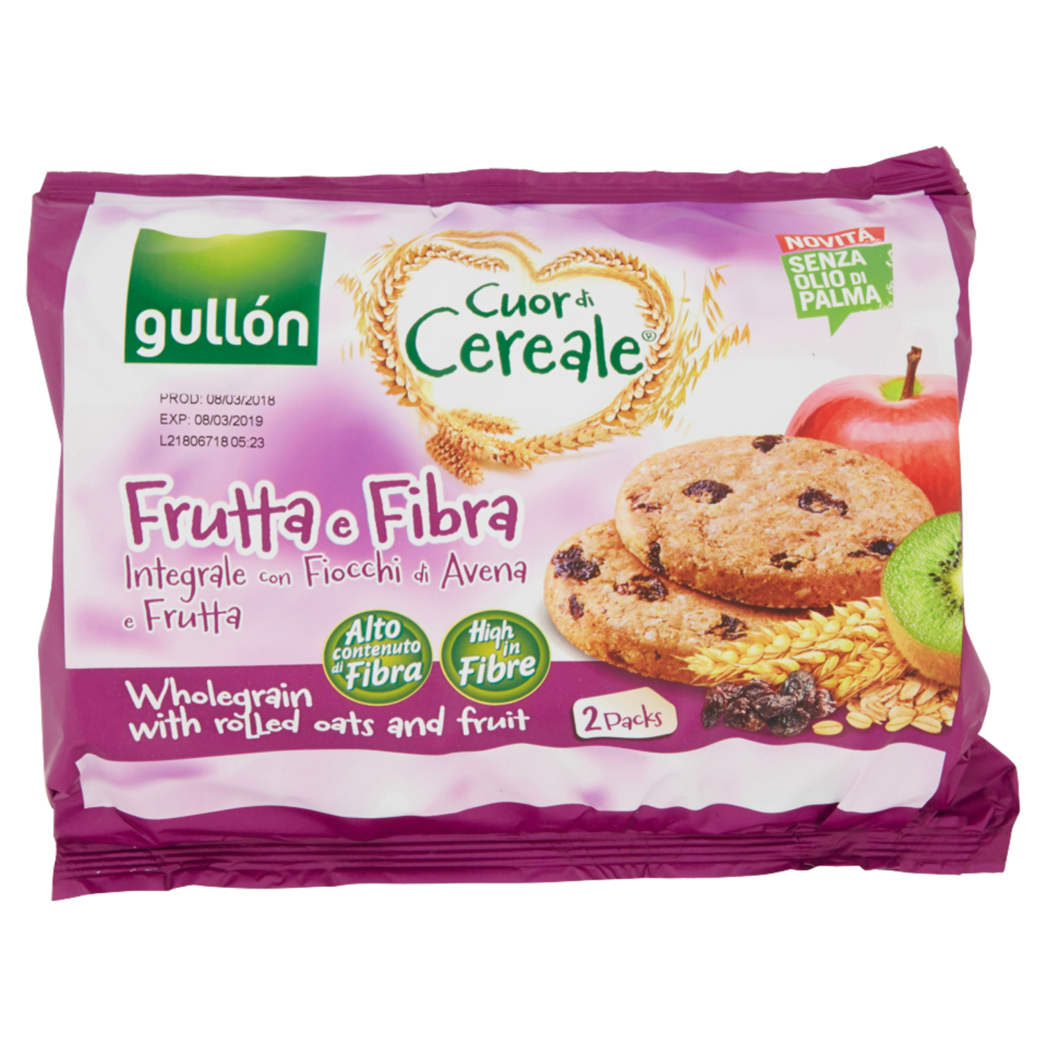 Gullón Cuor di Cereale Frutta e Fibra Integrale con Fiocchi di Avena e Frutta 2 x 300 g