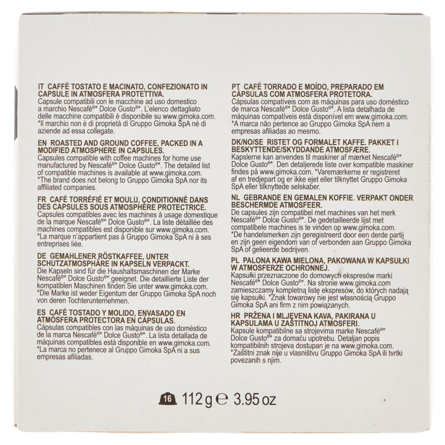 Gimoka Espresso Vellutato 100% Arabica Compatibile Nescafè* Dolce Gusto* 16 Capsule 112 g