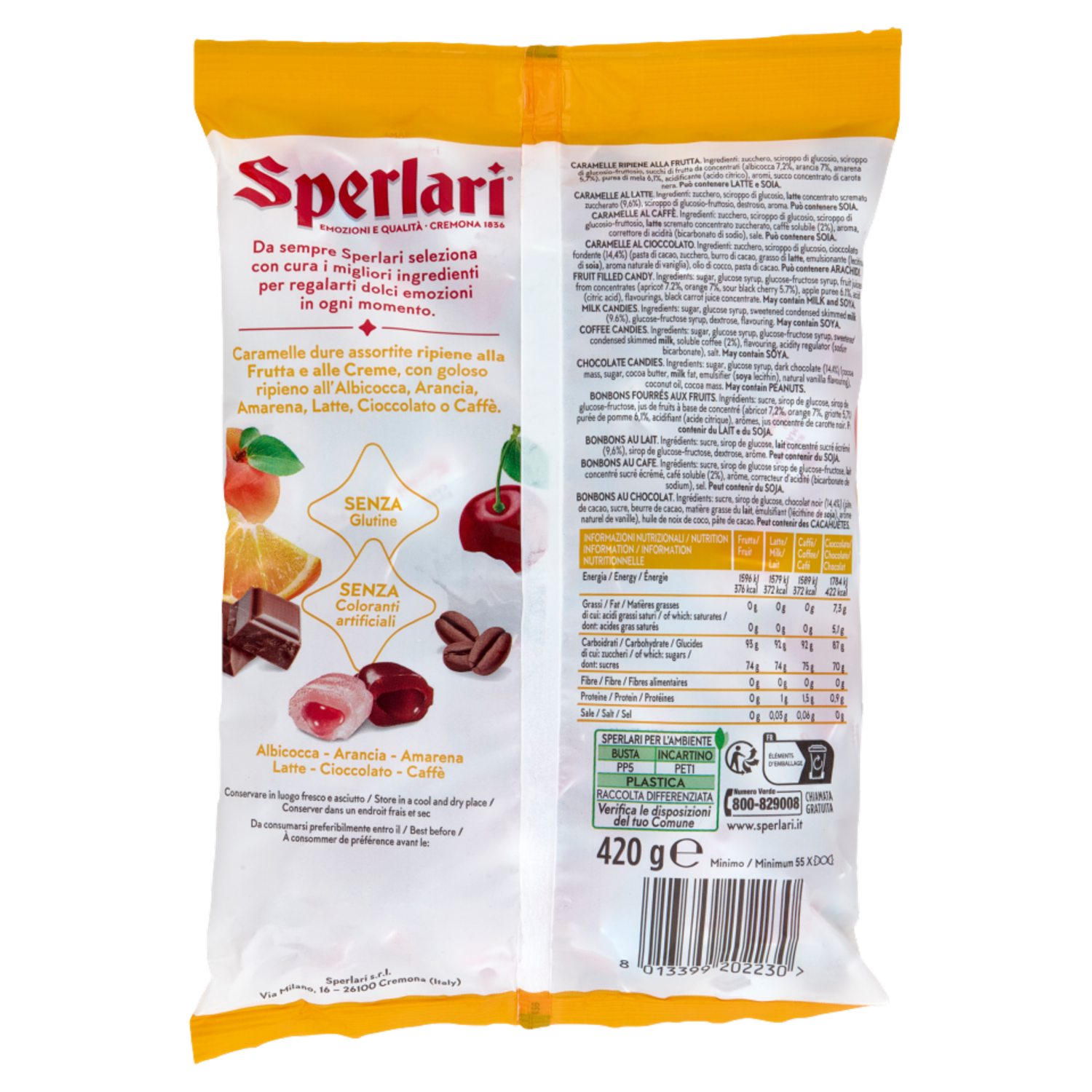 Sperlari Assortite Caramelle Dure con ripieno alla Frutta e alle Creme 420 g