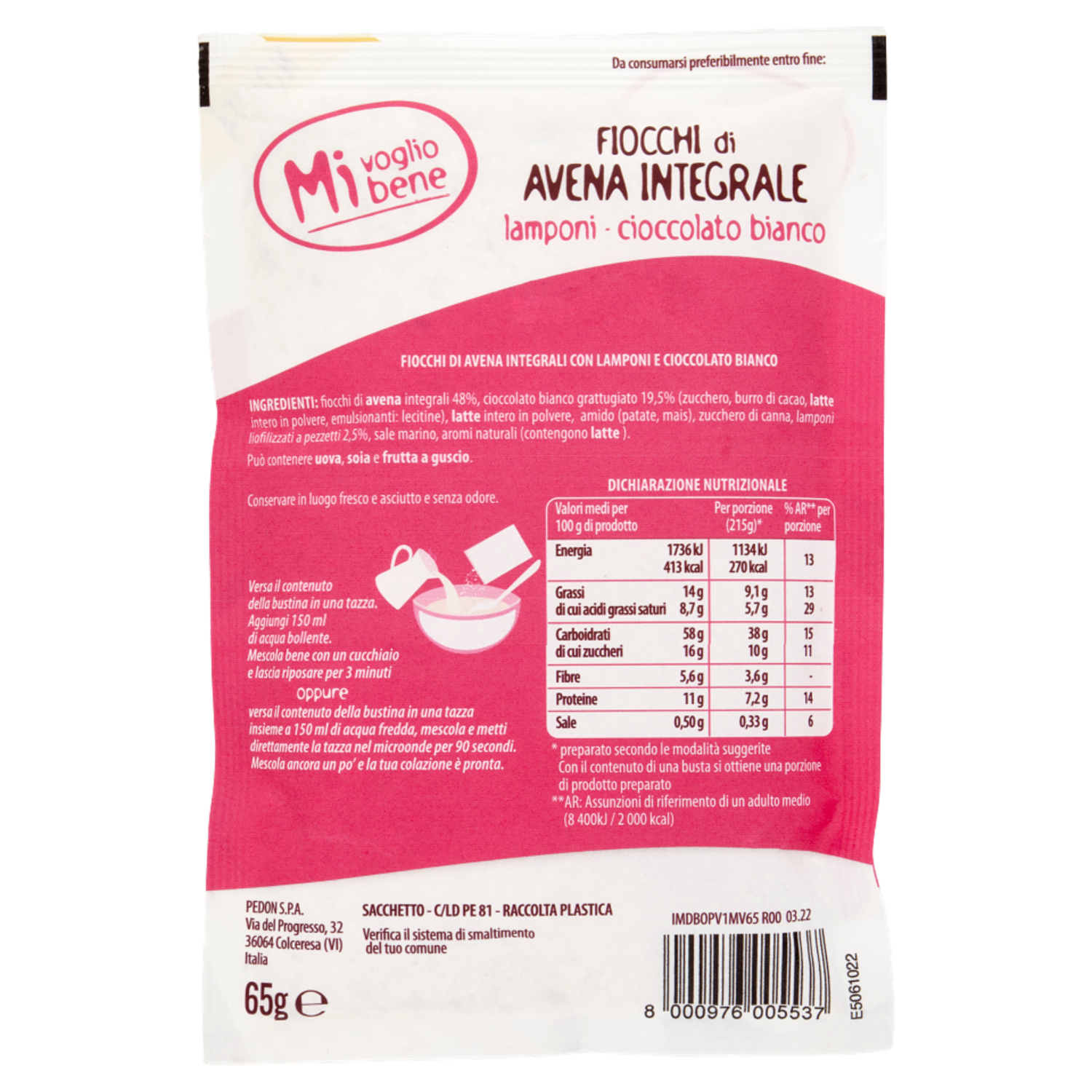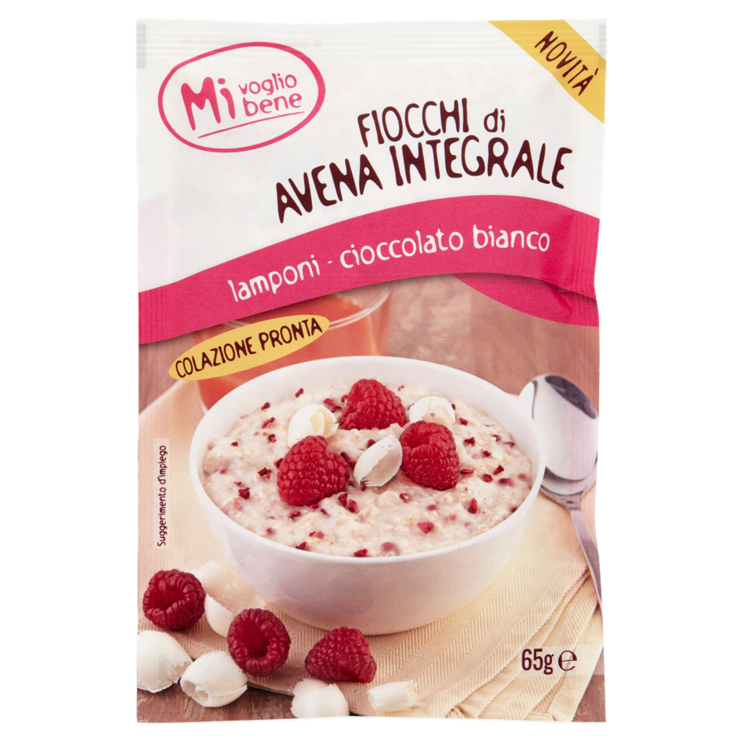 Mi voglio bene Fiocchi di Avena Integrale lamponi - cioccolato bianco 65 g