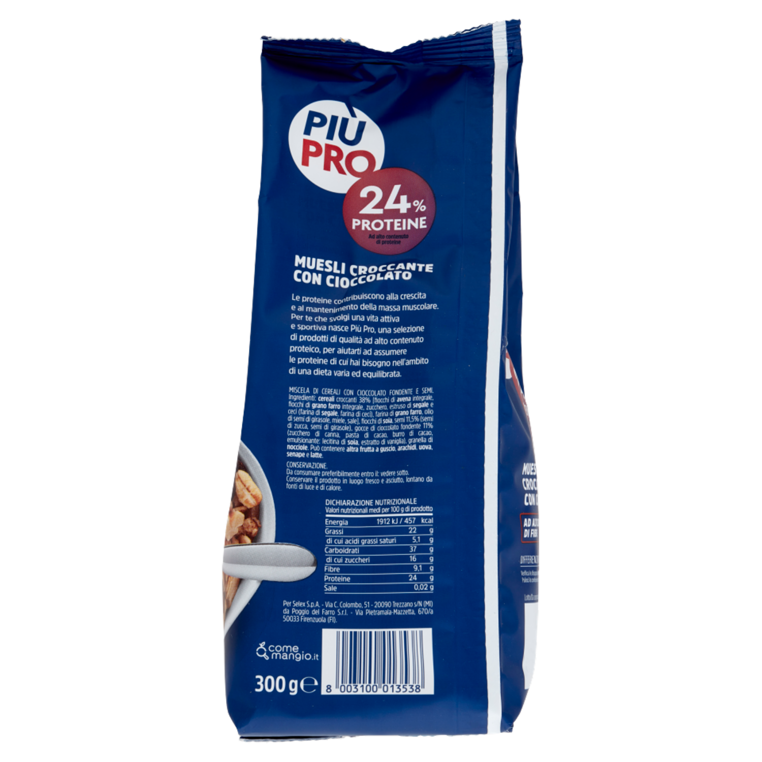 Piùpro Muesli Croccante con Cioccolato ad Alto Contenuto di Fibre 300 g