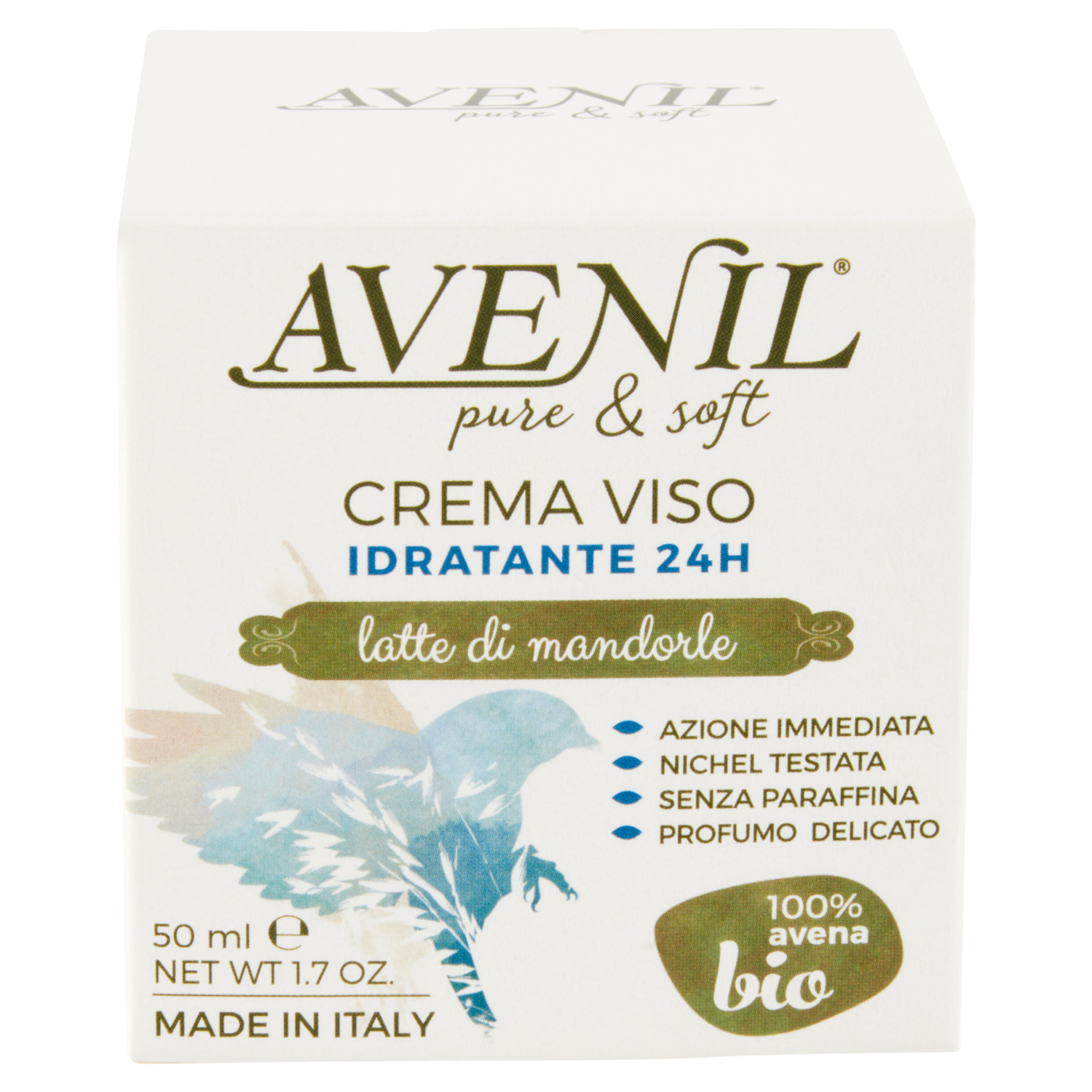 Avenil pure & soft Crema Viso Idratante 24H latte di mandorle 50 ml