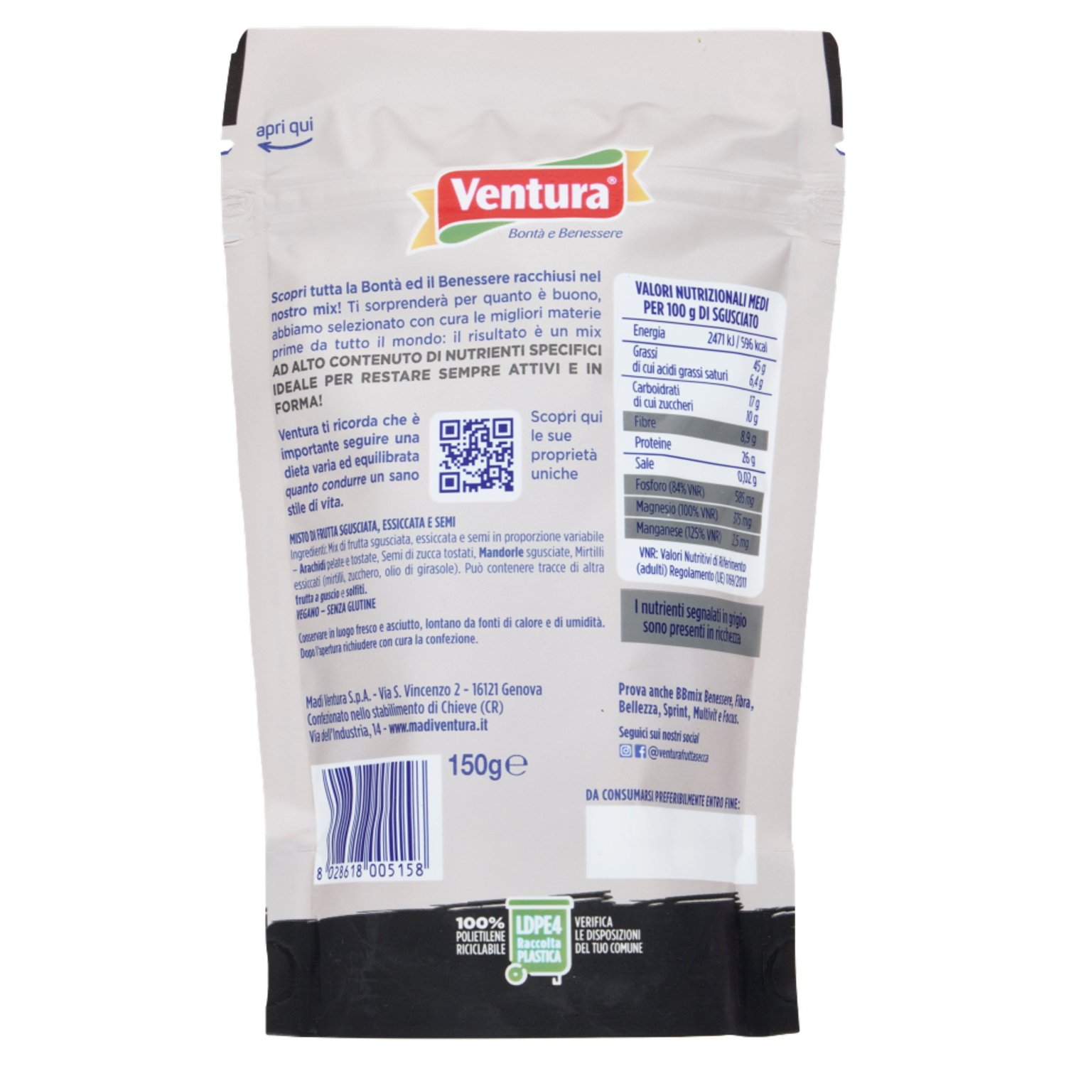 Ventura BBmix Proteico Mix di arachidi, semi di zucca, mandorle e mirtilli 150 g