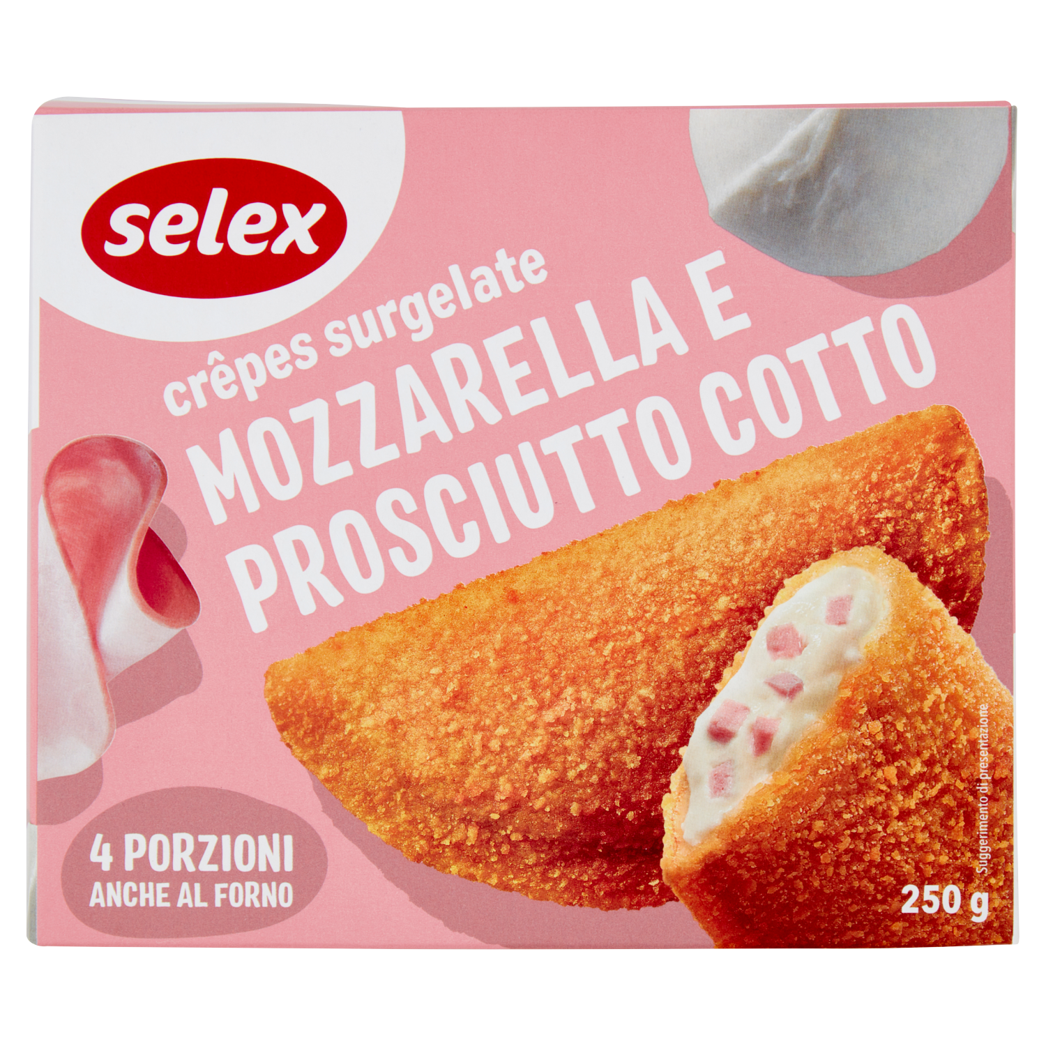 Selex Crêpes Surgelate Prosciutto Cotto e Mozzarella 4 pezzi 250 g