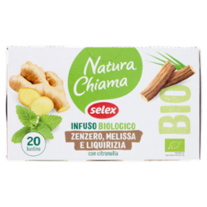 Selex Natura Chiama Infuso di Zenzero,Melissa,Liquirizia,Scorze Limone,Citronella Bio 20 Filtri 40 g
