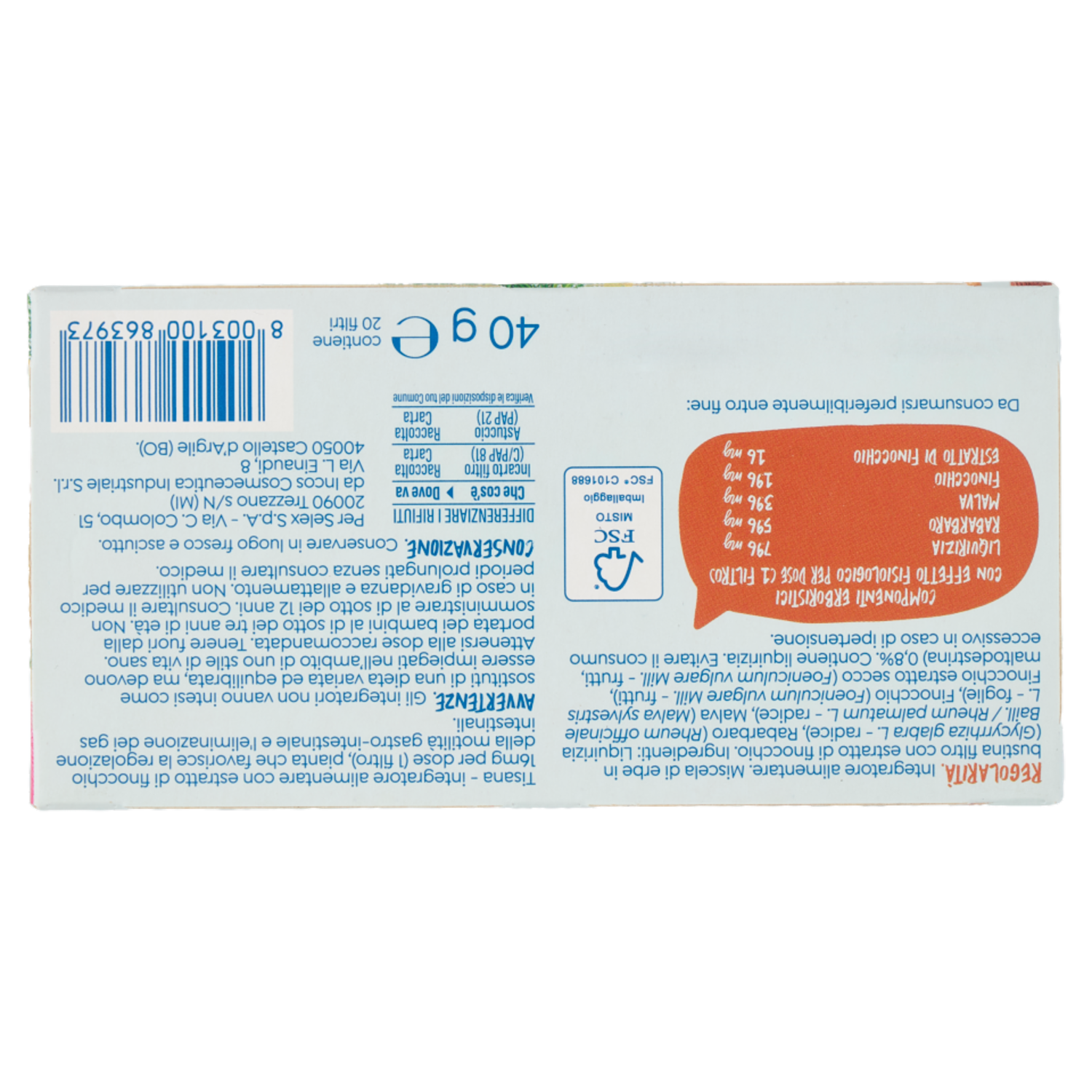 Selex Vivi Bene Tisana Regolarità con Estratto di Finocchio 20 Filtri 34 g