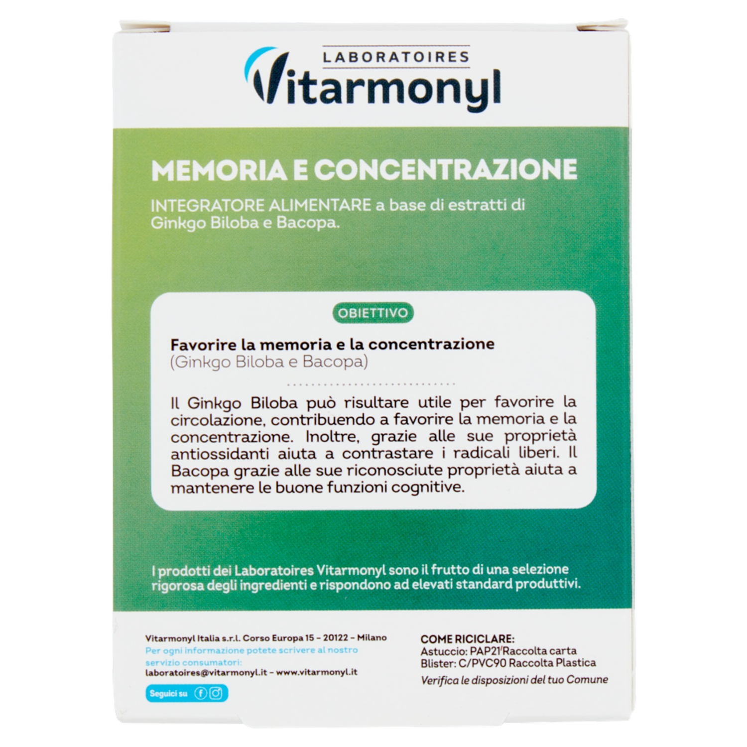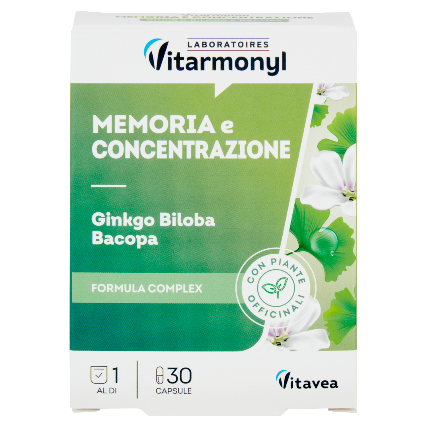 Laboratoires Vitarmonyl Memoria e Concentrazione Ginkgo Biloba Bacopa 30 Capsule 14,1 g