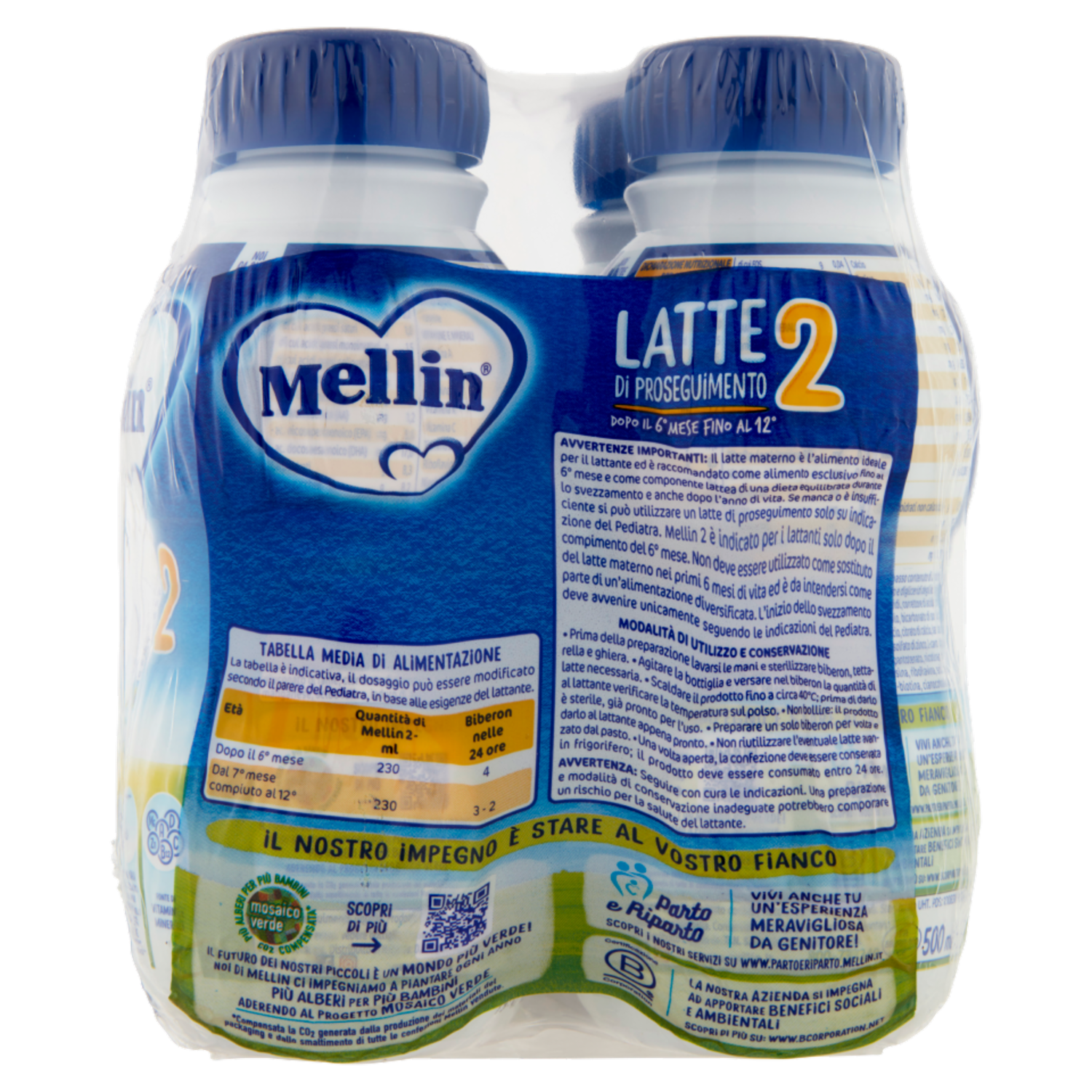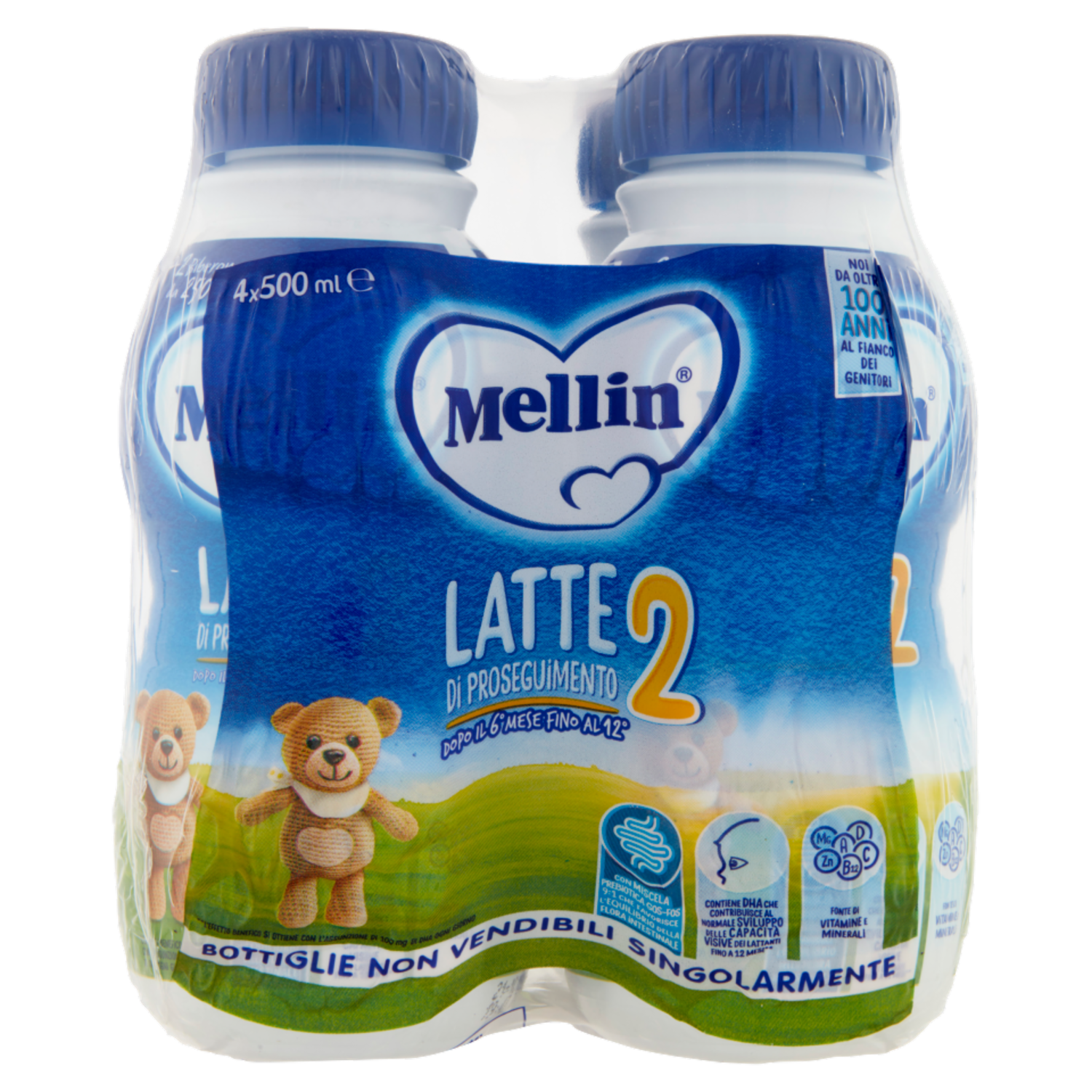 MELLIN 2 - Latte di Proseguimento Liquido per Lattanti dal 6° al 12° mese 4x500ml