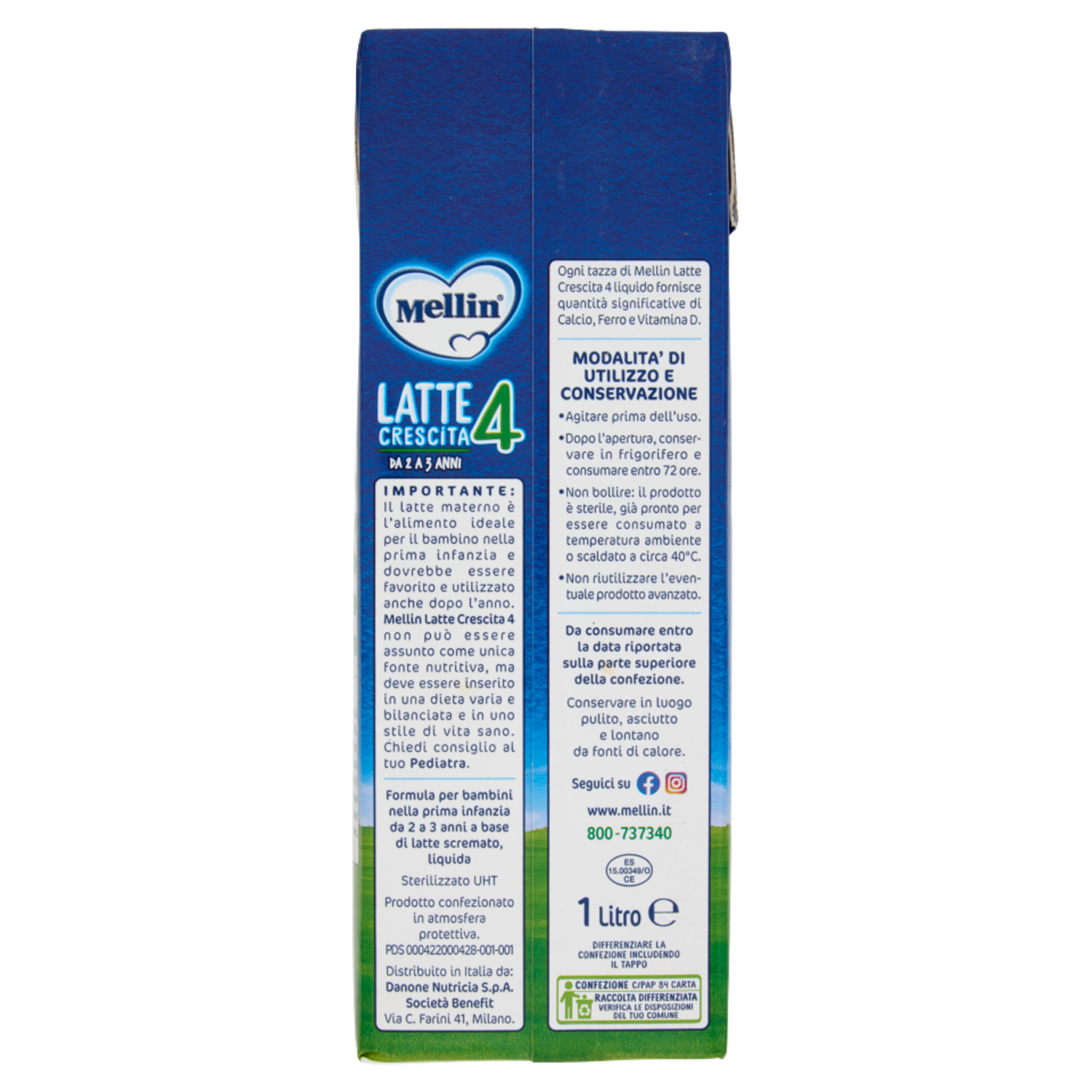 MELLIN 4 - Latte di Crescita Liquido, dal 24° mese compiuto al 36°, Fonte di Ferro, 1L