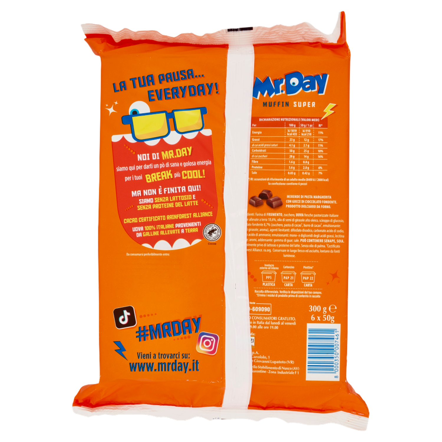 Mr.Day 6 Super Muffin con Pepite di Cioccolato Fondente 6 x 50 g