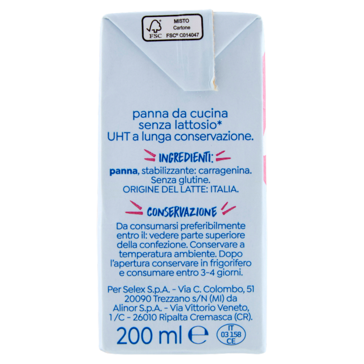 Selex Vivi Bene Panna da Cucina Uht Senza Lattosio 200 ml