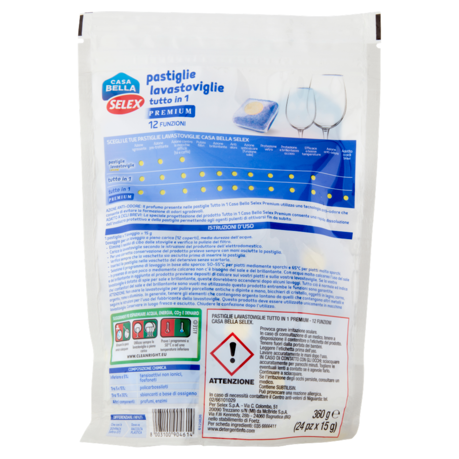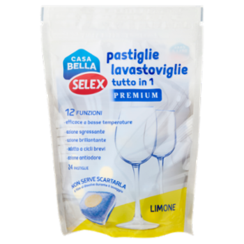 Selex Casa Bella Detersivo per Lavastoviglie Pastiglie Tutto in 1 al Limone 24x15 g