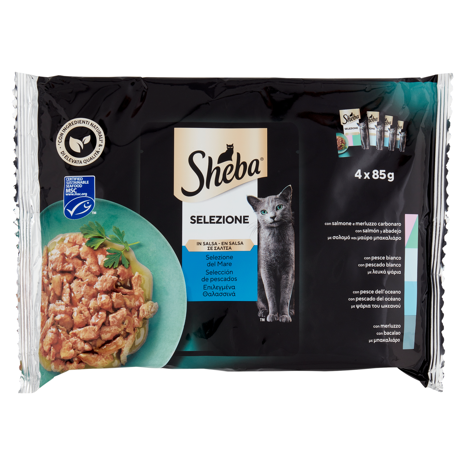 Sheba Selezione Cibo Umido Gatto in Salsa Selezione del Mare 4 x 85g