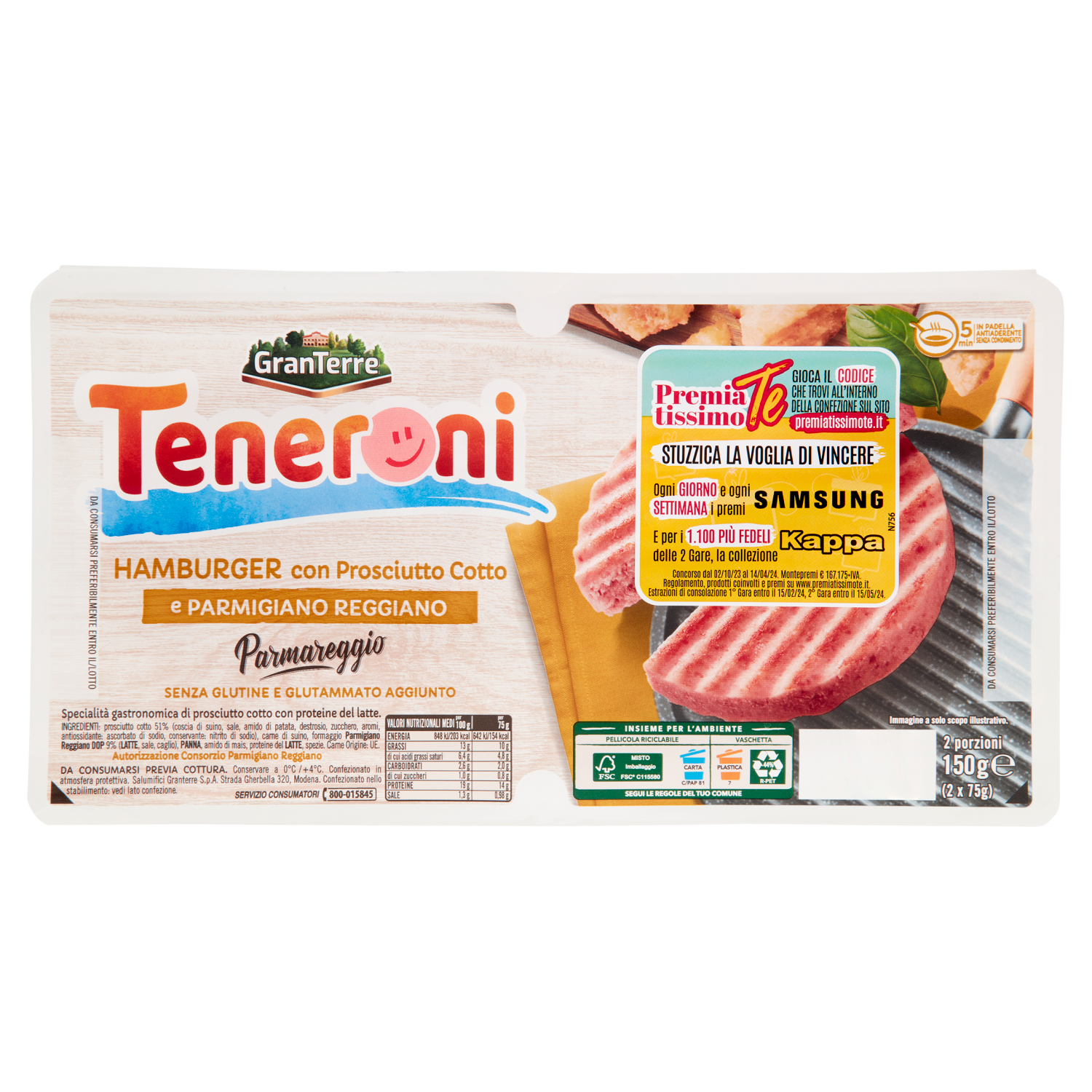 Teneroni Hamburger con Prosciutto Cotto e Parmigiano Reggiano 2 x 75 g