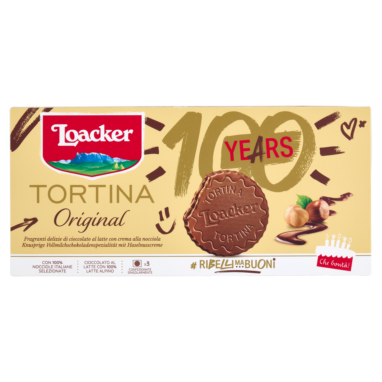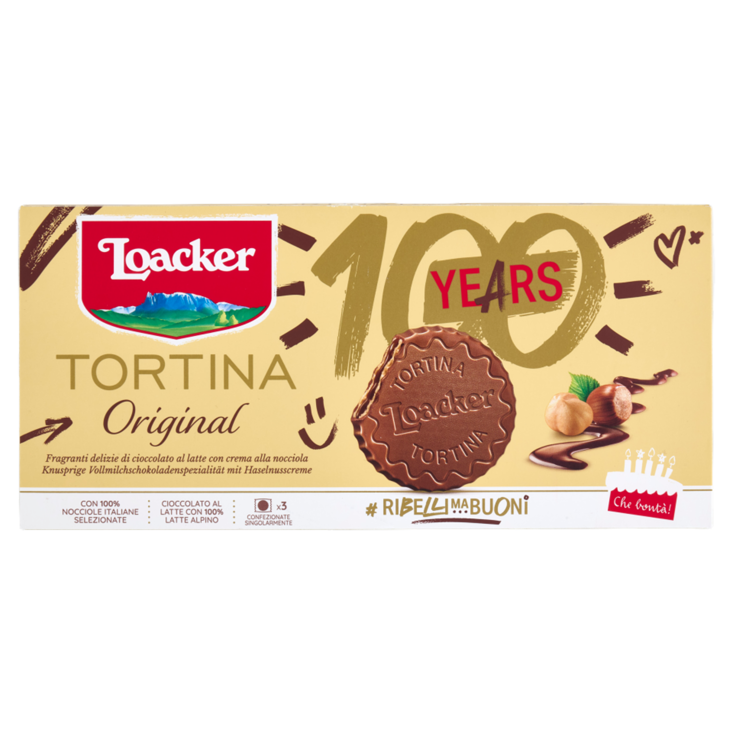 Loacker Tortina Original Wafer ricoperto di Cioccolato al Latte con crema di Nocciole Italiane 21gx3