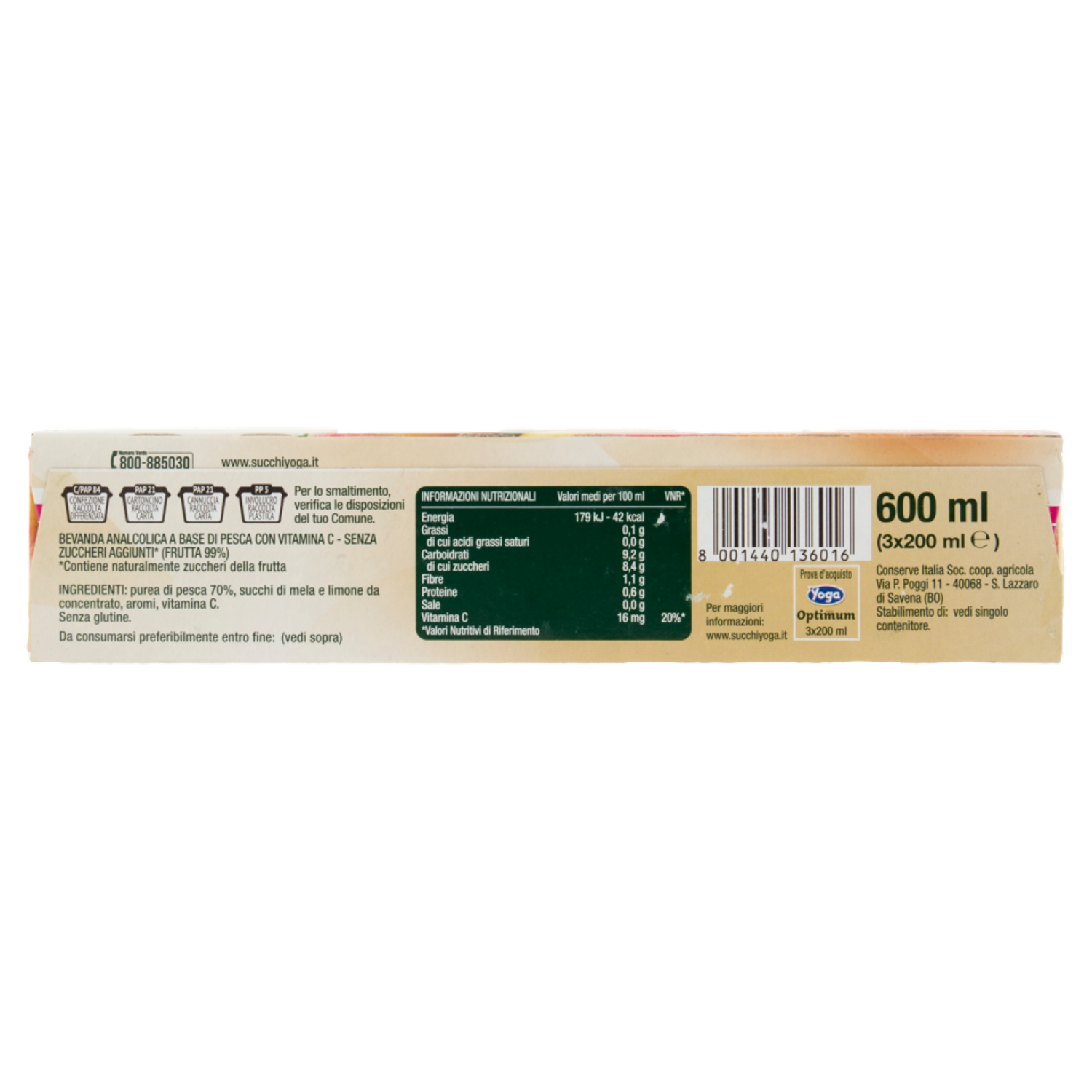 Yoga Optimum 70% di Pesca Italiana Senza Zuccheri Aggiunti* 3 x 200 ml