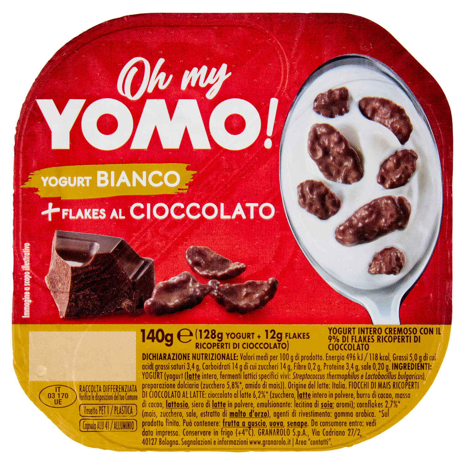 Oh my Yomo! Yogurt Bianco + Flakes al Cioccolato 140 g