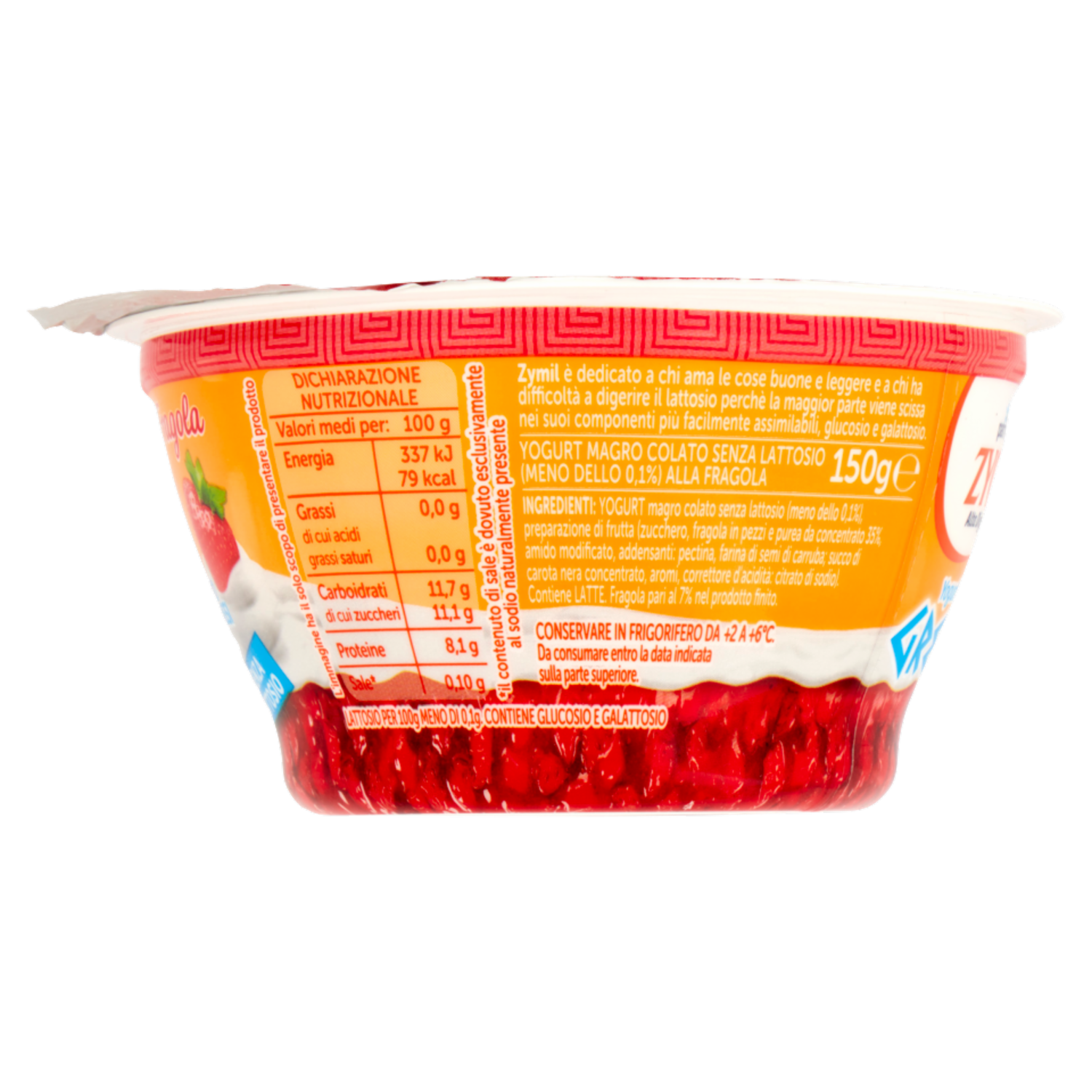 ZYMIL Alta Digeribilità Senza Lattosio Yogurt alla Greca Zero Grassi Fragola 150 g
