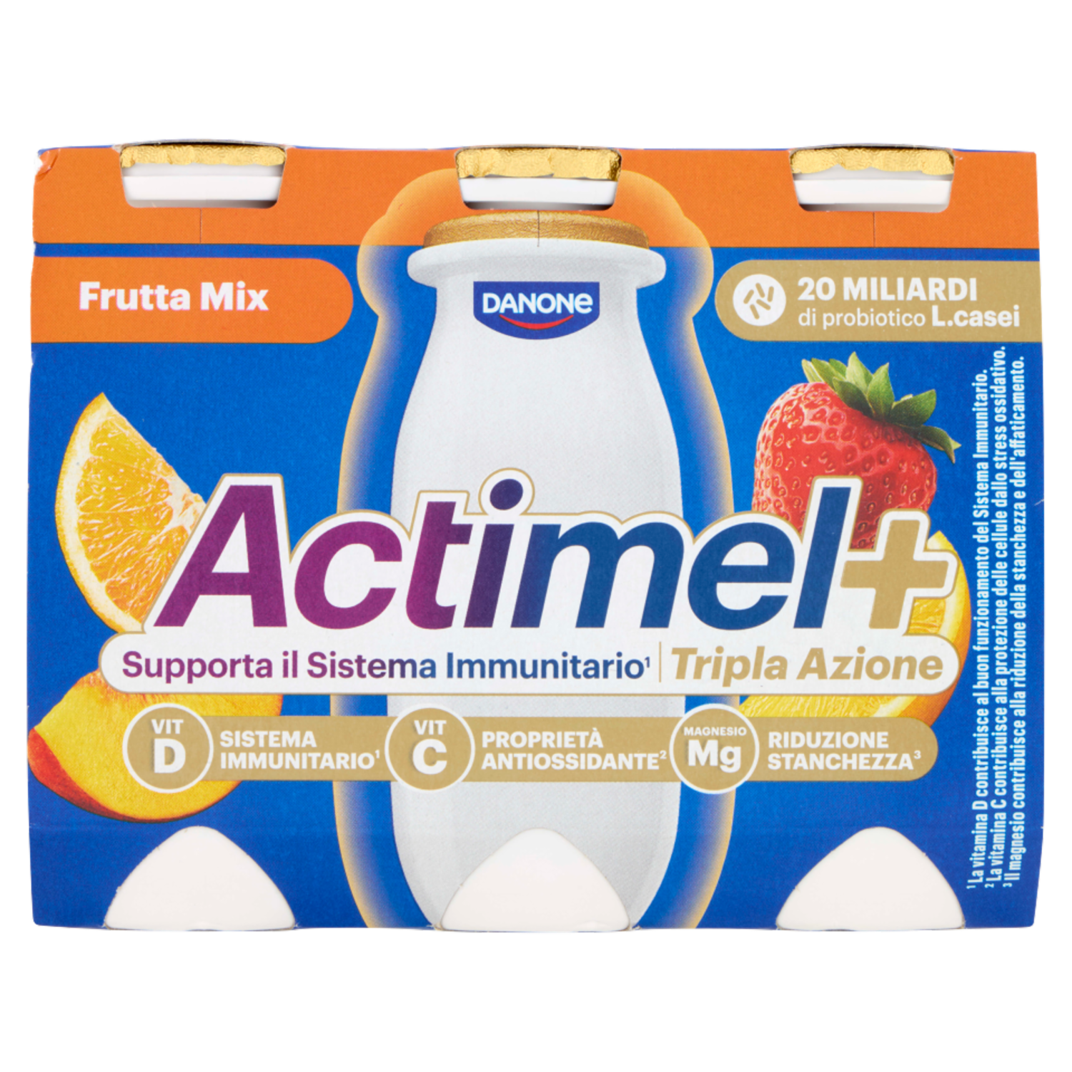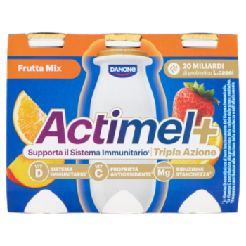 ACTIMEL Tripla Azione, Yogurt da Bere con Vitamine C, D e Magnesio, gusto Frutta mix, 6x100G