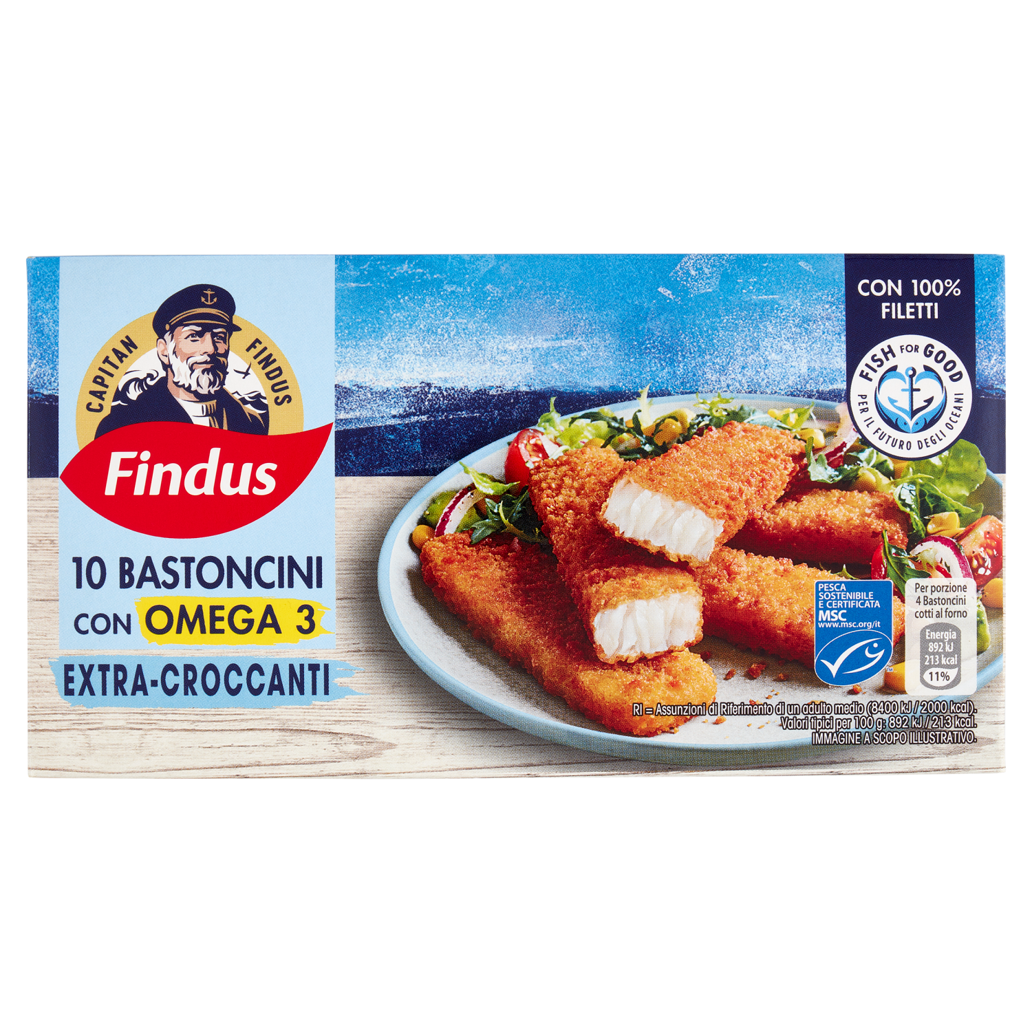 Capitan Findus 10 Bastoncini con 100% Filetti di Merluzzo con Omega 3 250 g