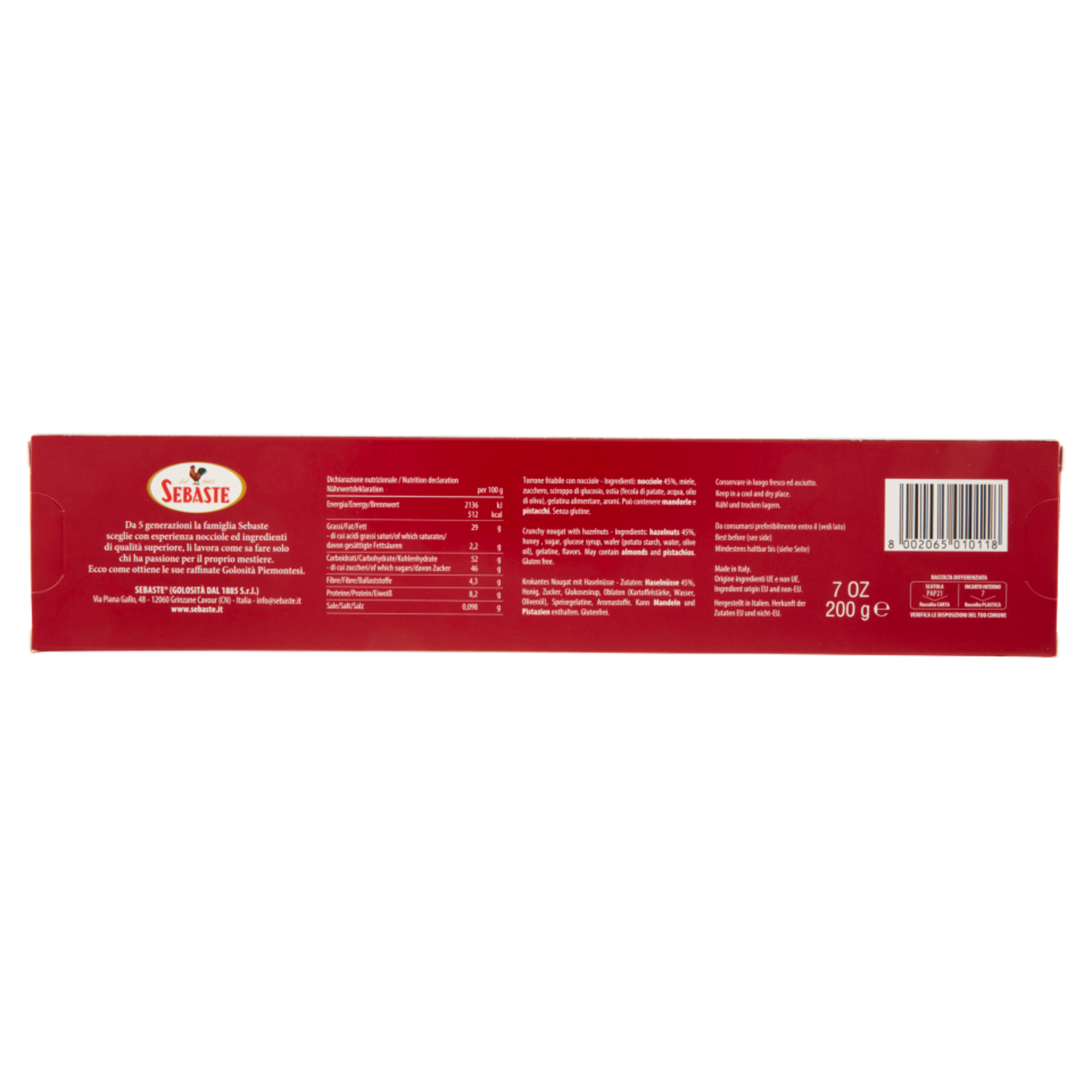 Sebaste Torrone Friabile con Nocciole 200 g
