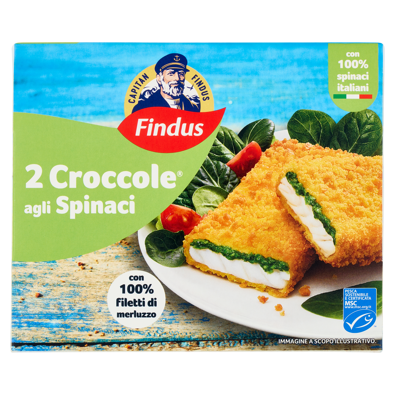 Capitan Findus 2 Croccole agli Spinaci con 100% Filetti di Merluzzo 200 g