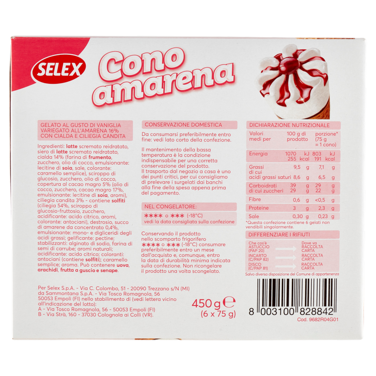 Selex 6 Coni di Gelato Amarena 450 g