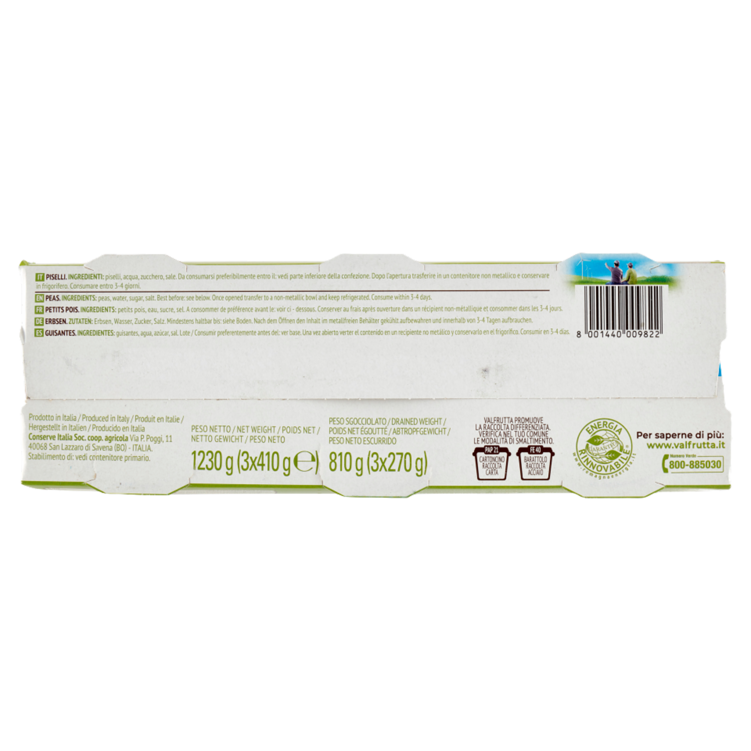 Valfrutta Piselli Piccoli Italiani 3 x 410 g