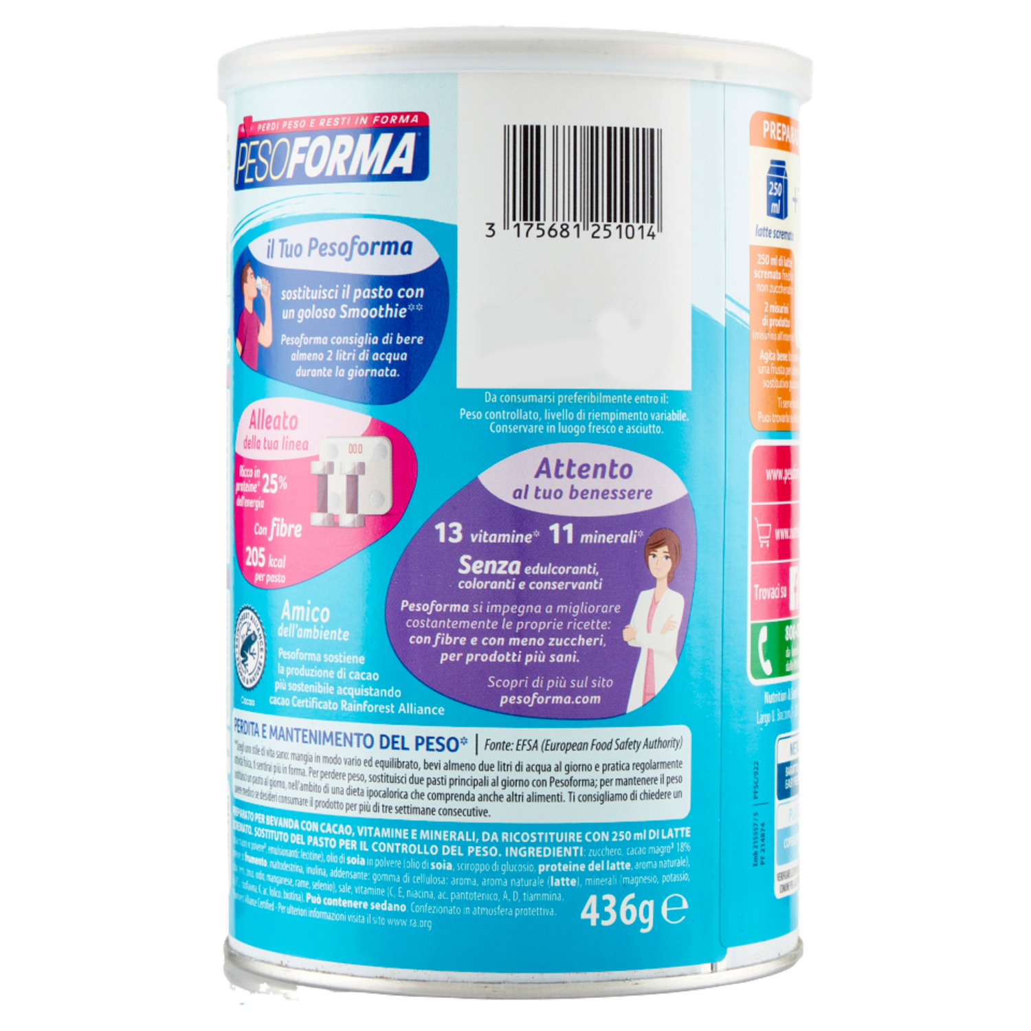Pesoforma Choco Smoothie, Pasto sostitutivo gusto Cioccolato, Shake per il controllo del peso, 436g