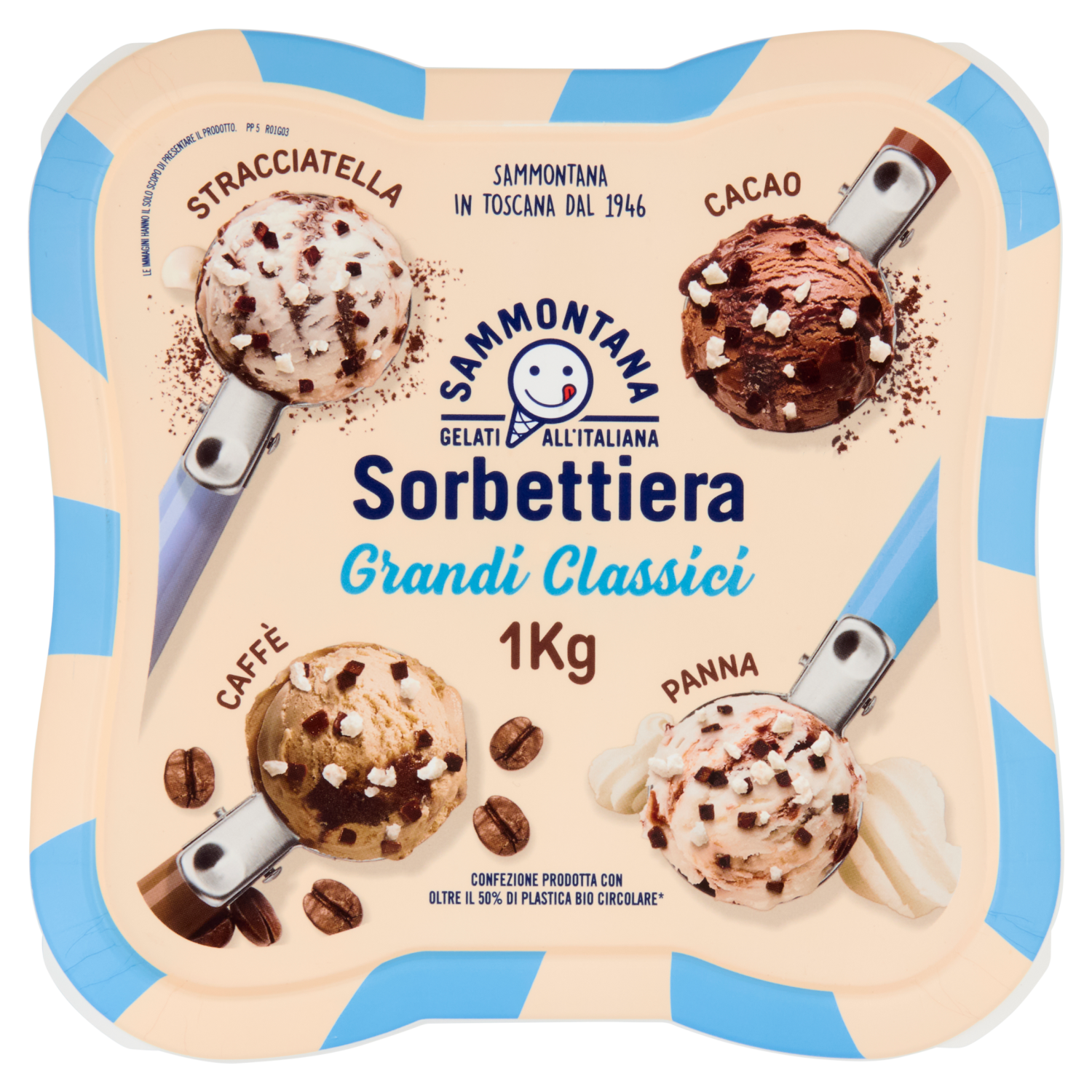 Sammontana Sorbettiera Grandi Classici Stracciatella, Cacao, Caffè, Panna 1 Kg