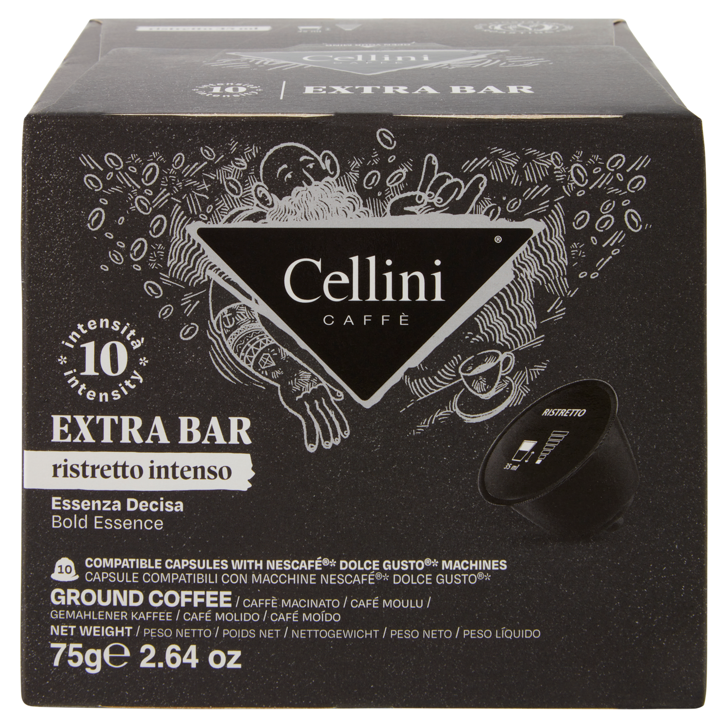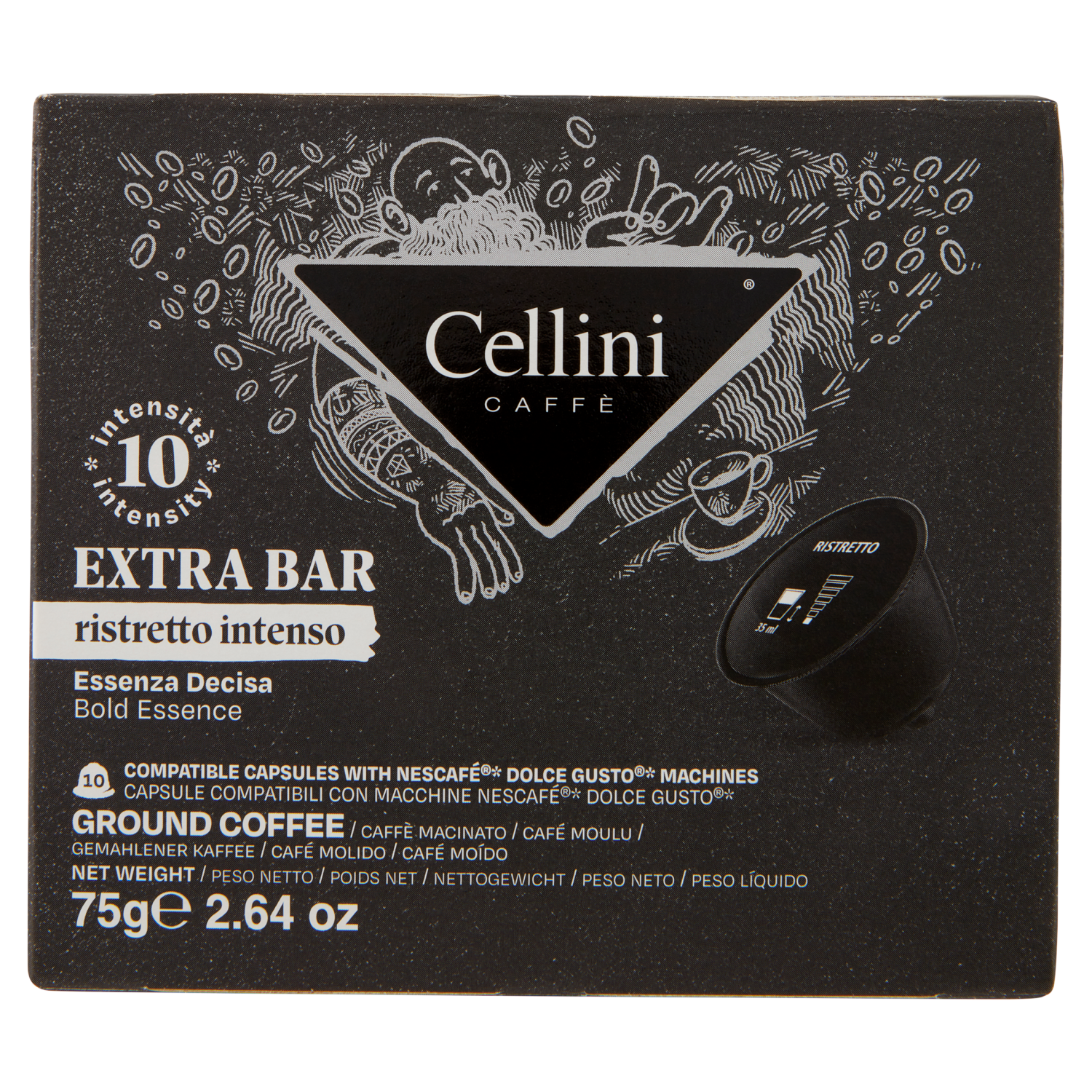 Cellini Caffè Extra Bar ristretto intenso 10 Capsule Compatibili 75 g