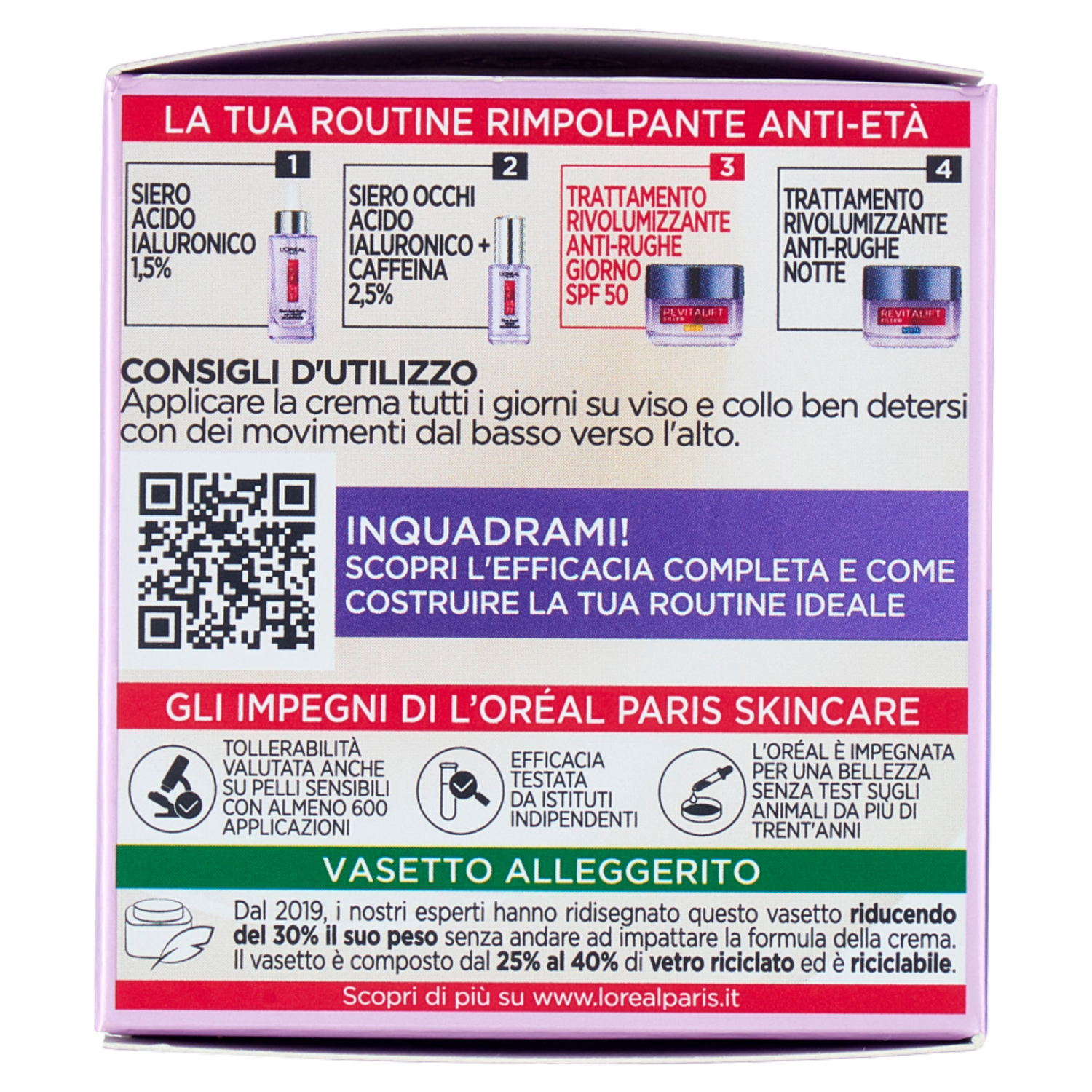 L'Oréal Paris Revitalift Filler Trattamento Rivolumizzante Anti-Rughe SPF 50 50 ml