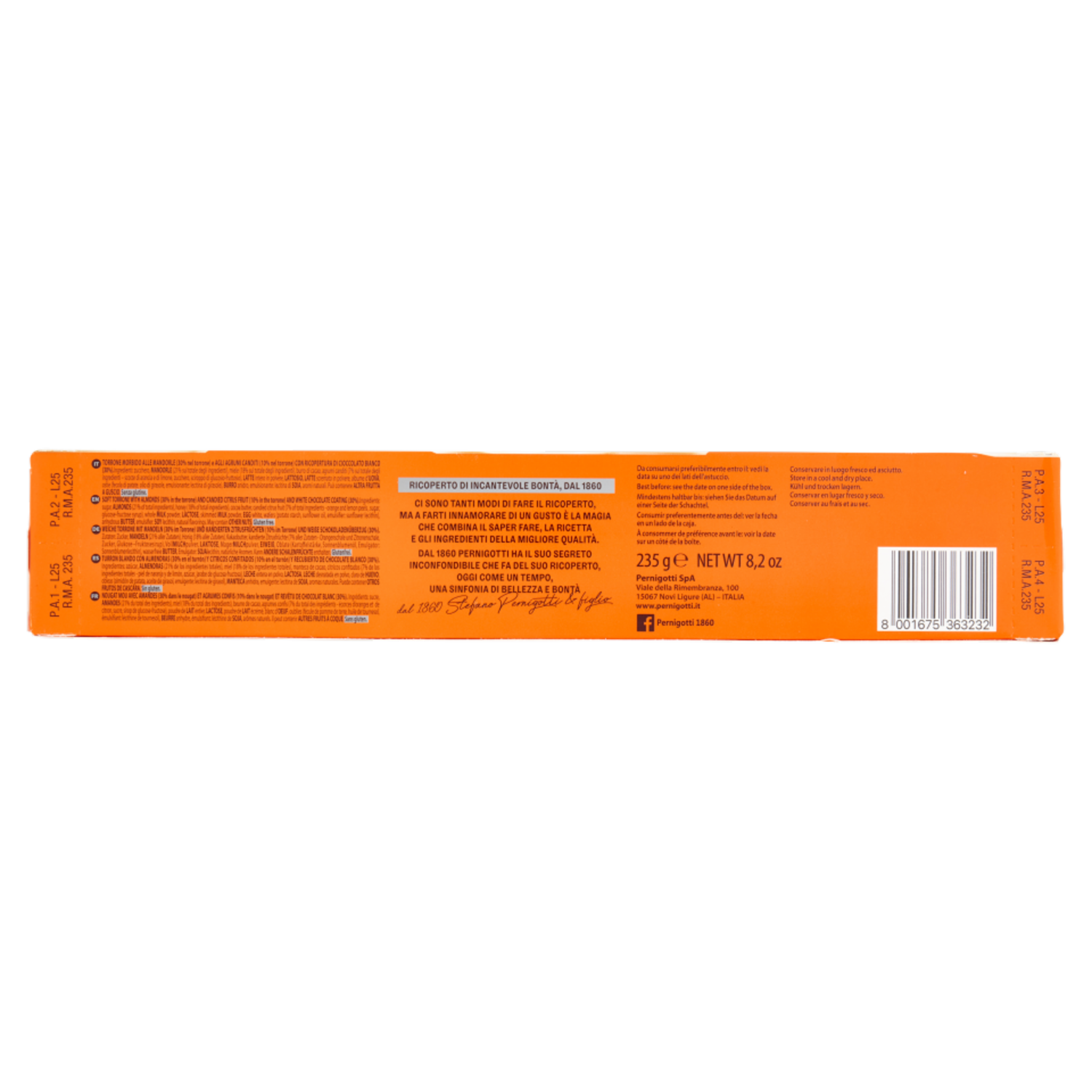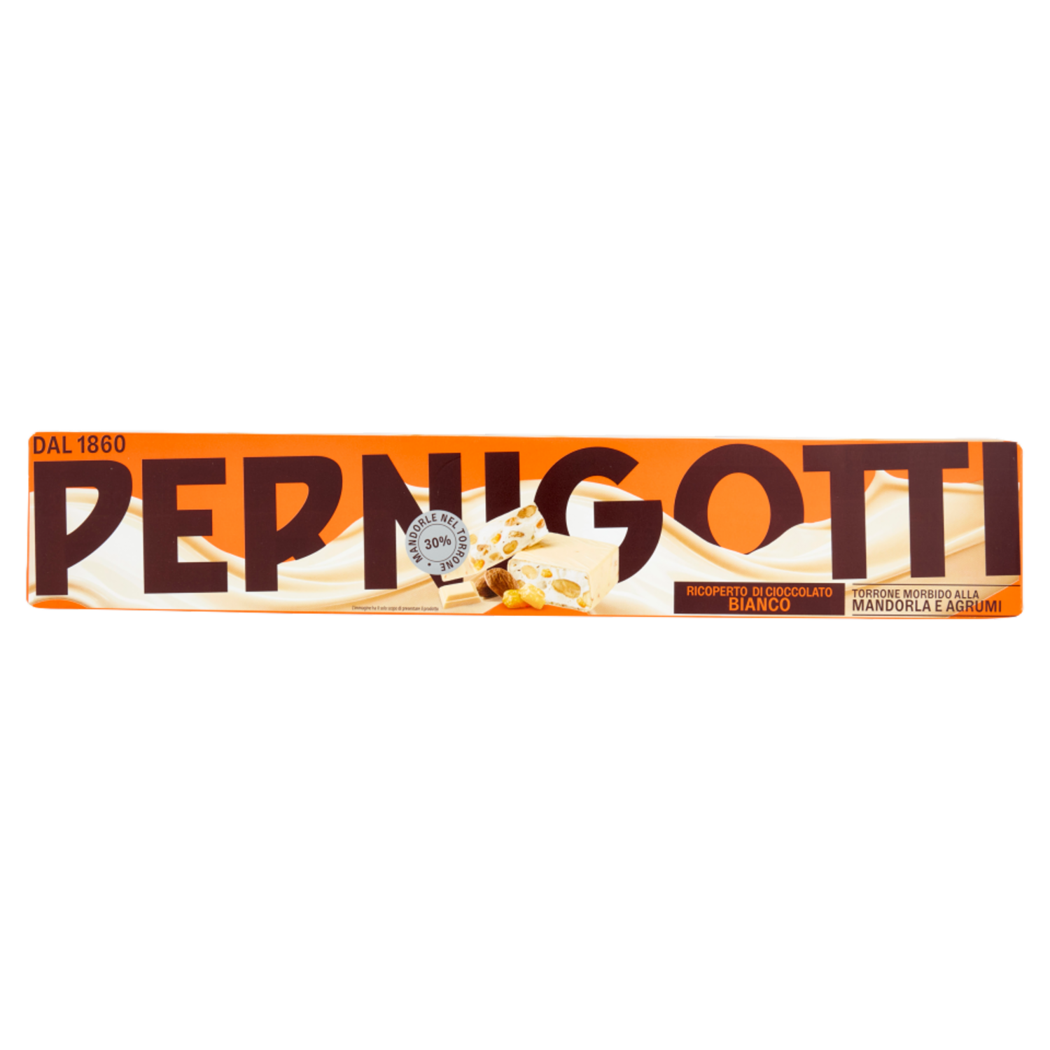 Pernigotti Ricoperto di Cioccolato Bianco Torrone Morbido alla Mandorla e Agrumi 235 g
