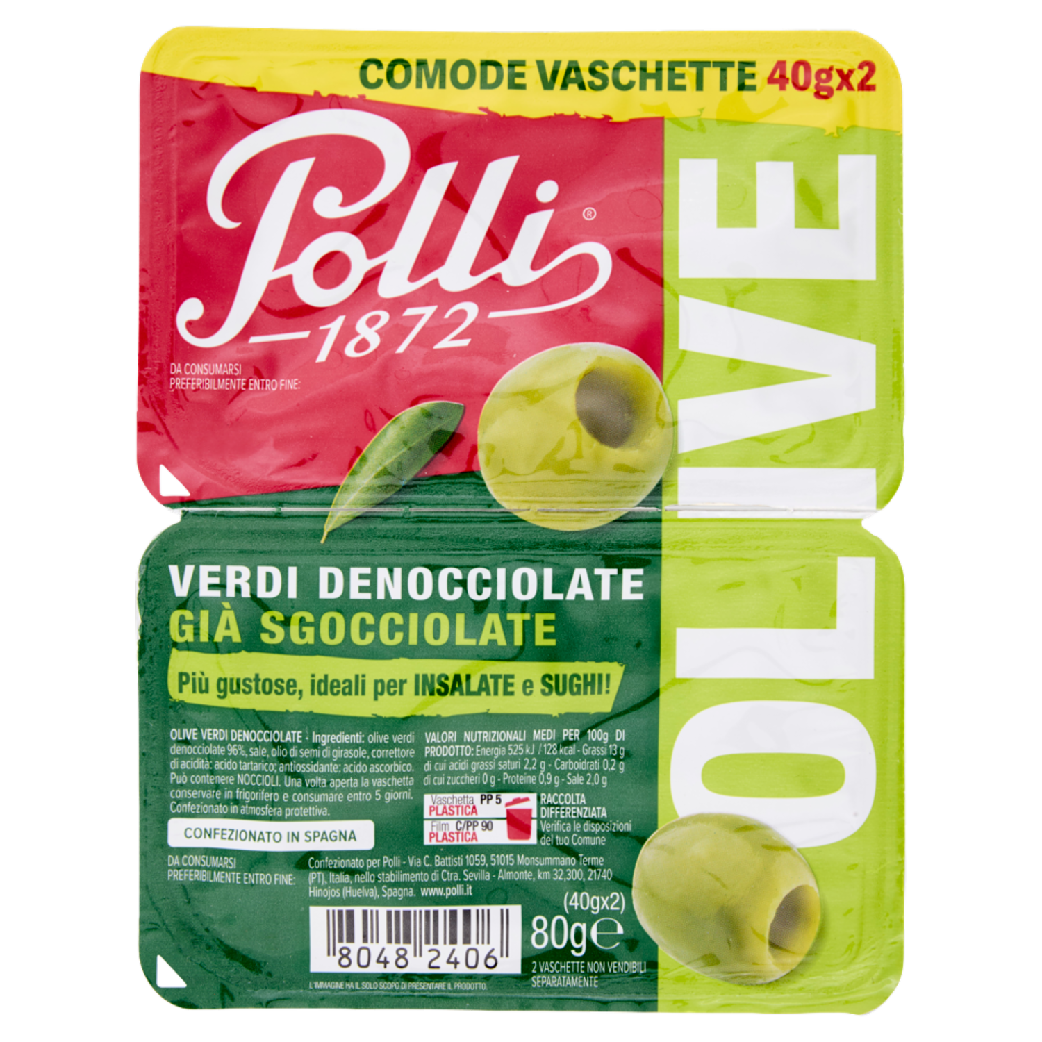 Polli Olive Verdi Denocciolate Già Sgocciolate 2 x 40 g