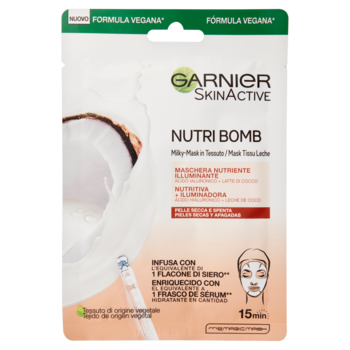 Garnier Maschera in Tessuto Nutriente Illuminante NutriBomb, Pelli Secche e Spente, Latte di Cocco