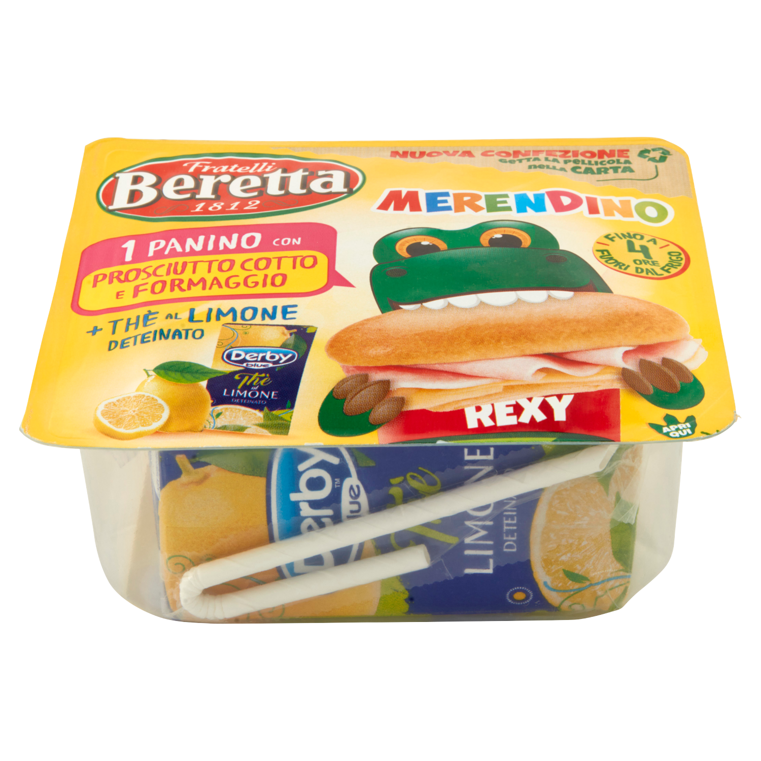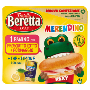 Fratelli Beretta Merendino Panino con Prosciutto Cotto e Formaggio + Thè al Limone Deteinato 179 g