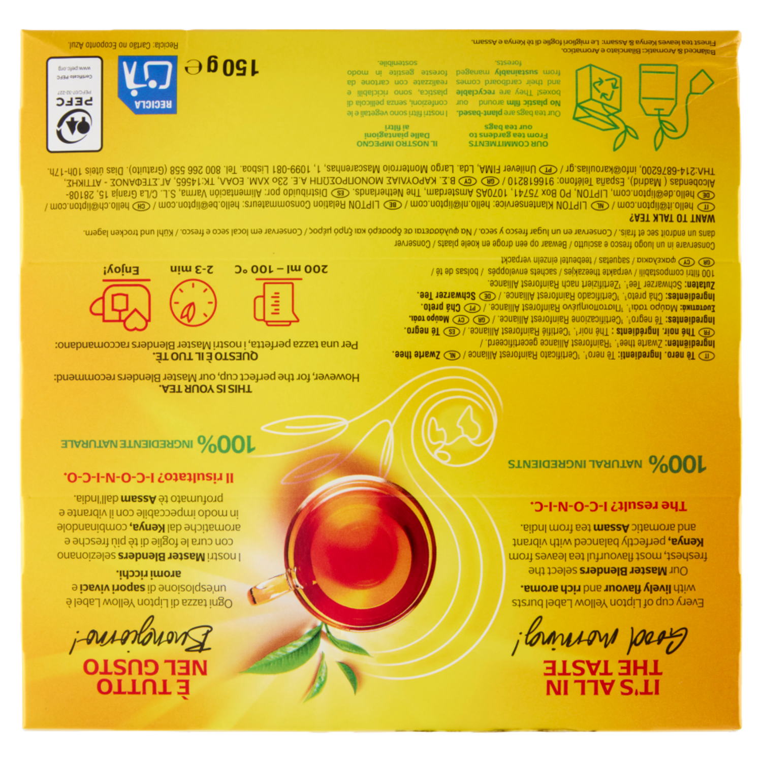 Lipton Yellow Label Classico Tè Nero 100 Filtri Compostabili 150 g