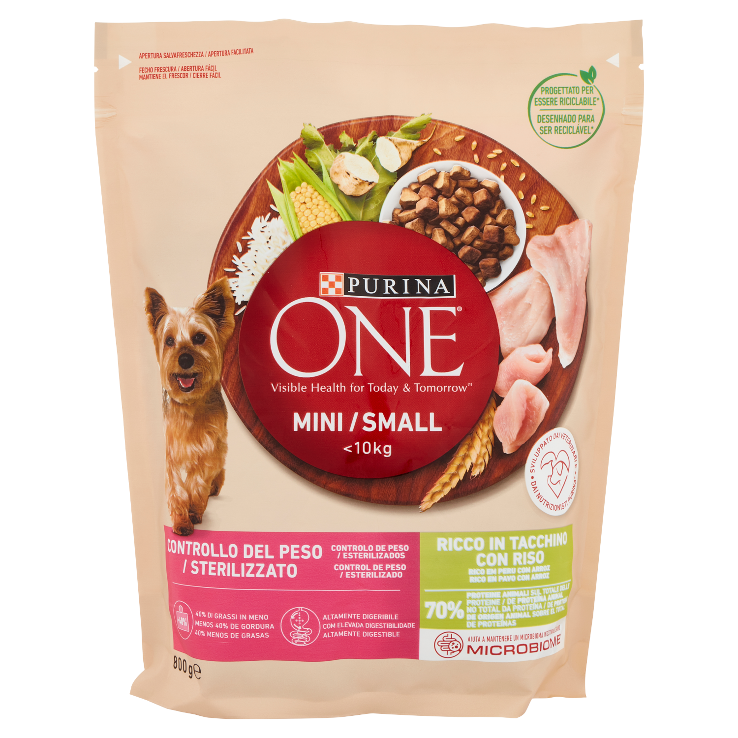 PURINA ONE Mini/Small Controllo del Peso/Sterilizzato Ricco in Tacchino con Riso 800 g